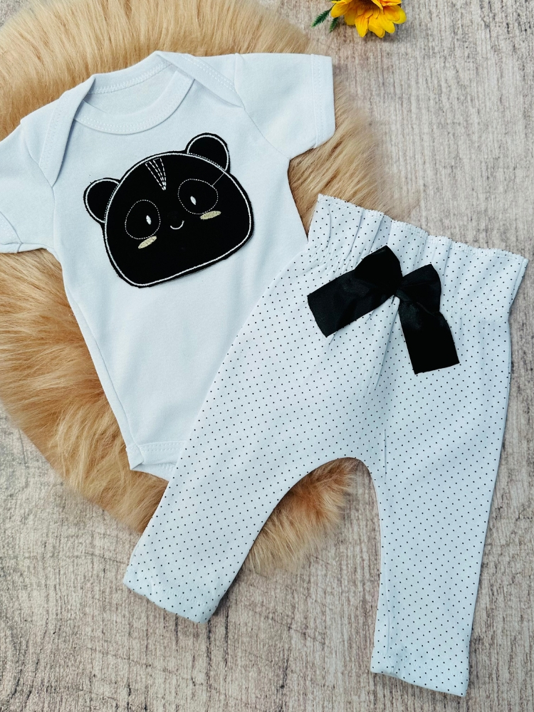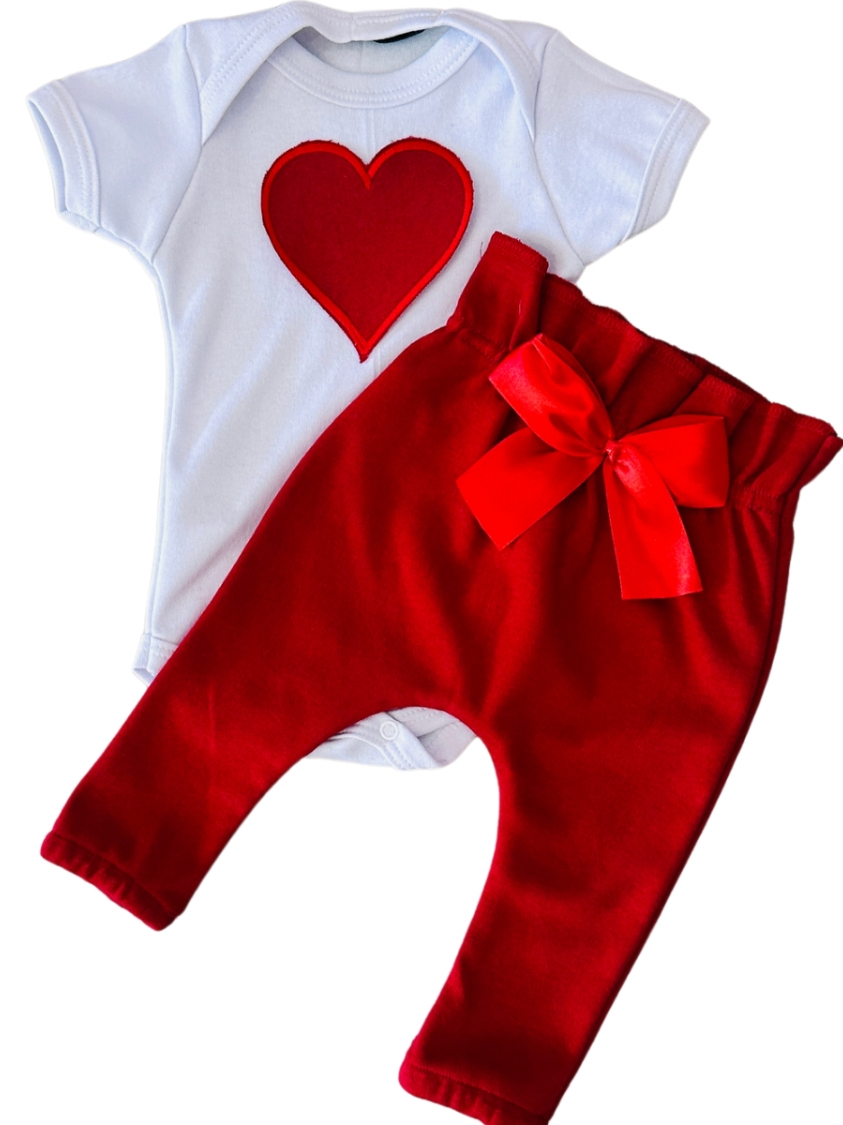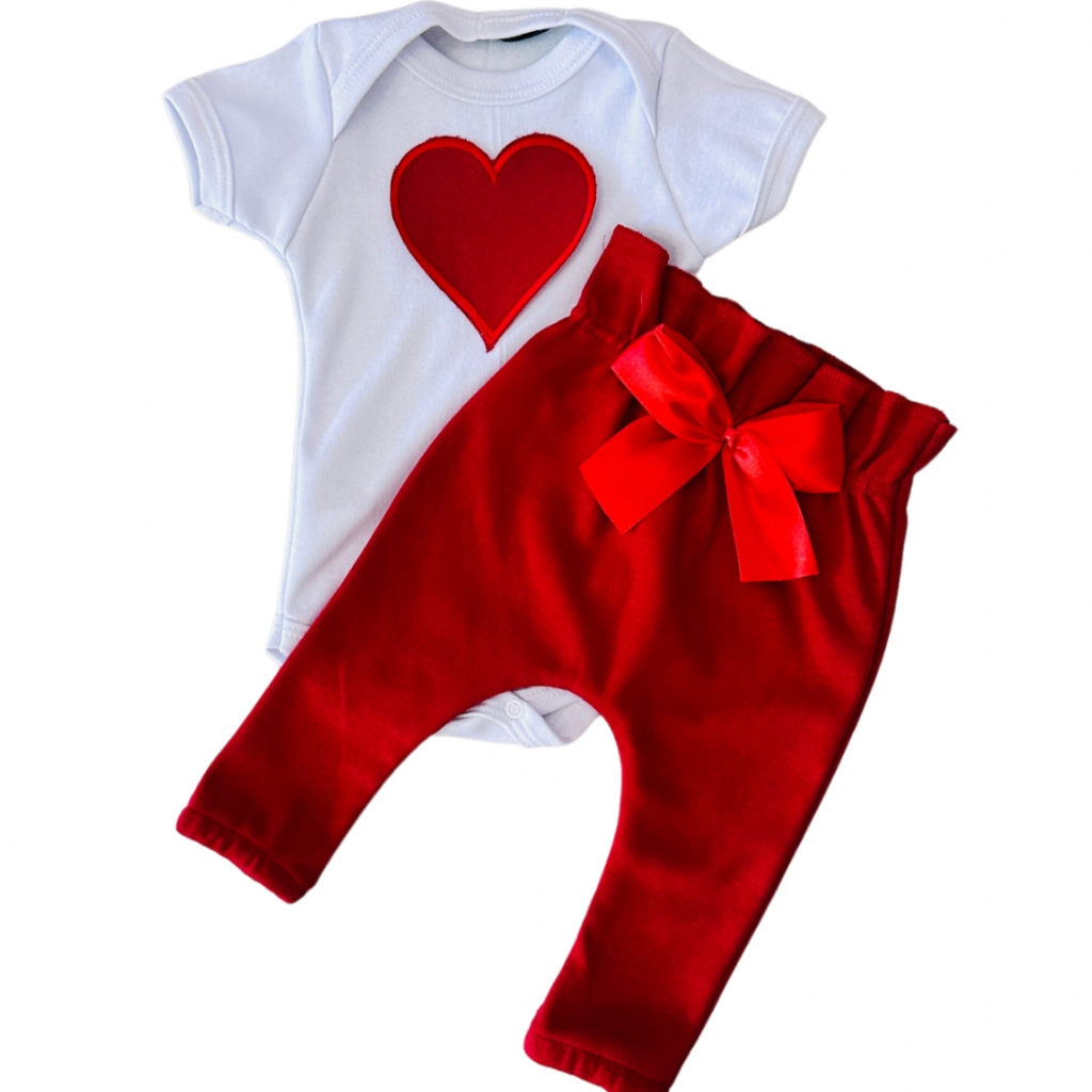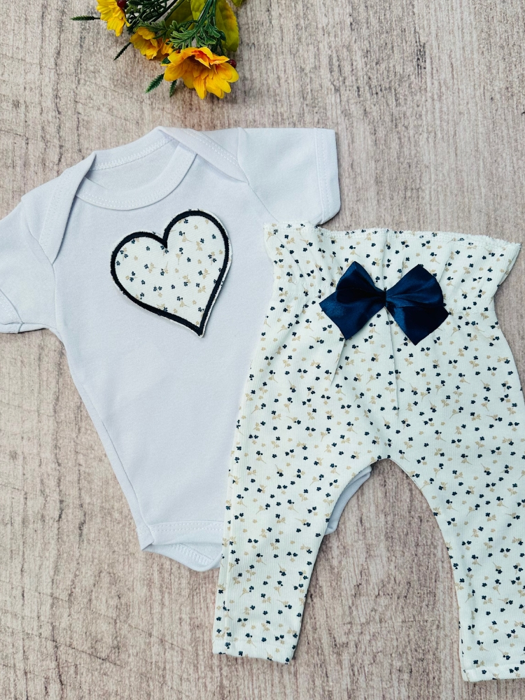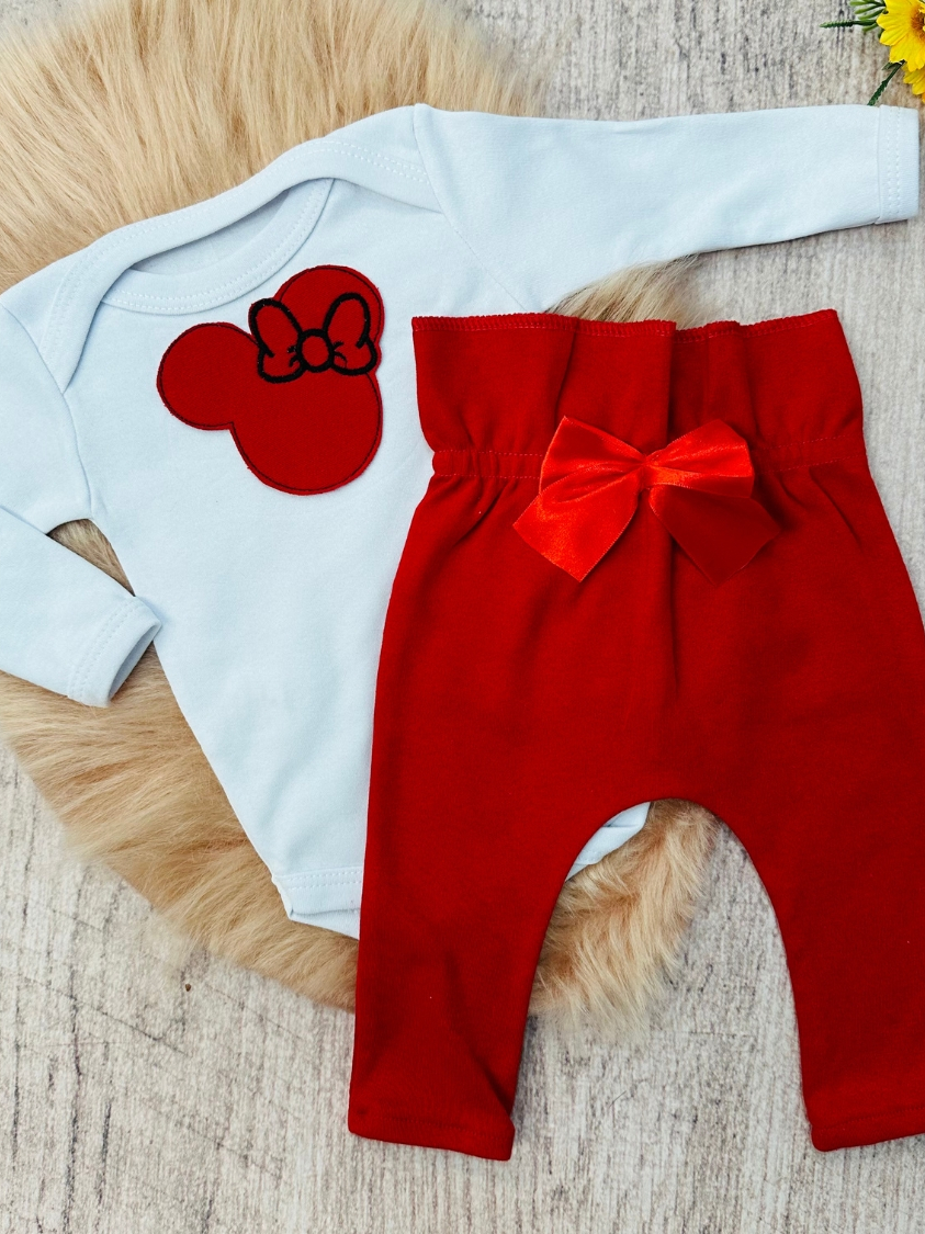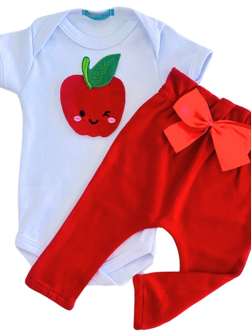 Conjunto Roupa Menina Bebê Algodão Manga Curta com Aplique Bordado Calça e Body Roupinha Bebês luxo