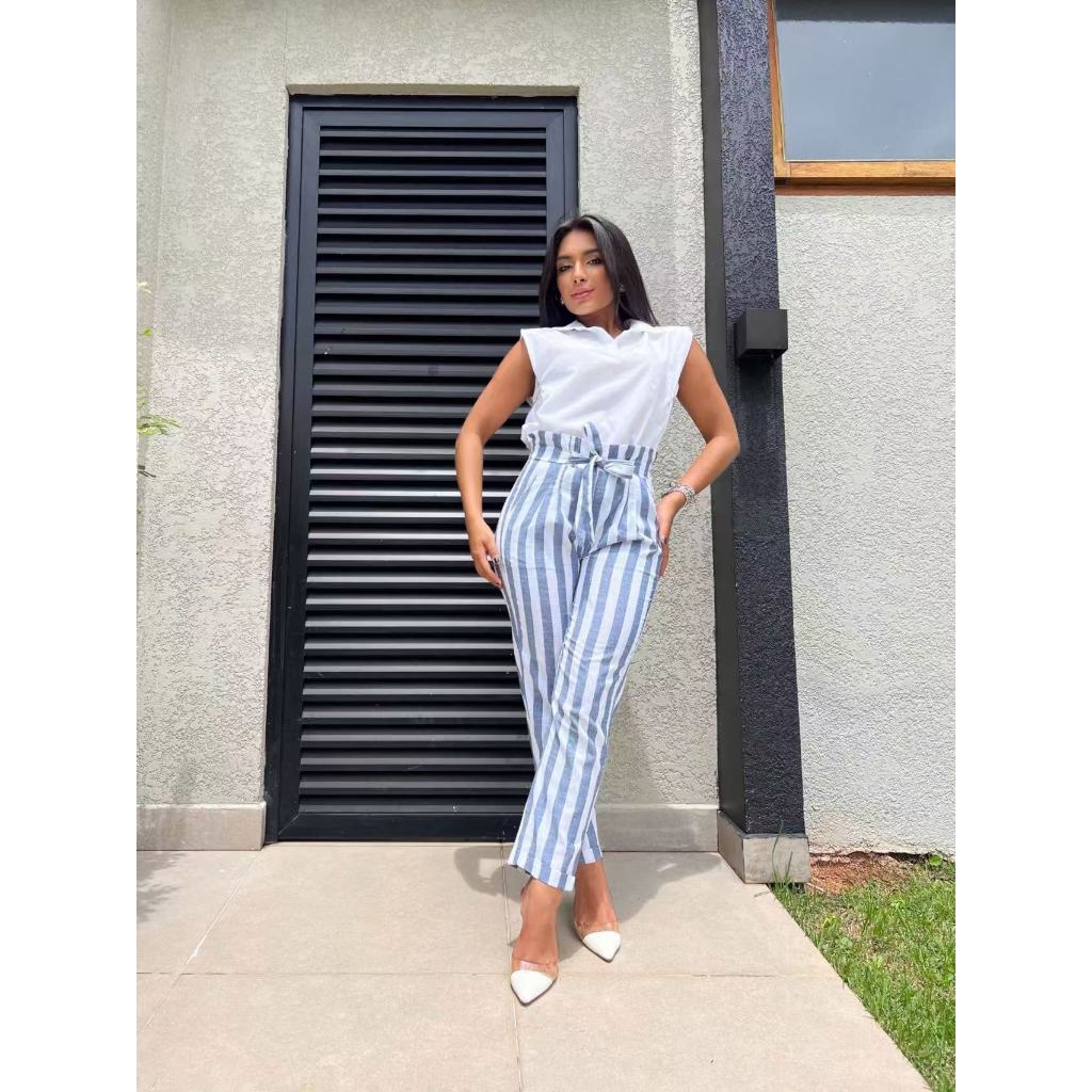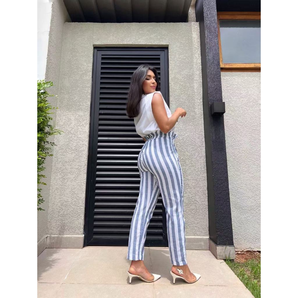 Calça Pantacourt linho Listrada 36P----42GG– Conforto e Estilo para Qualquer Ocasião