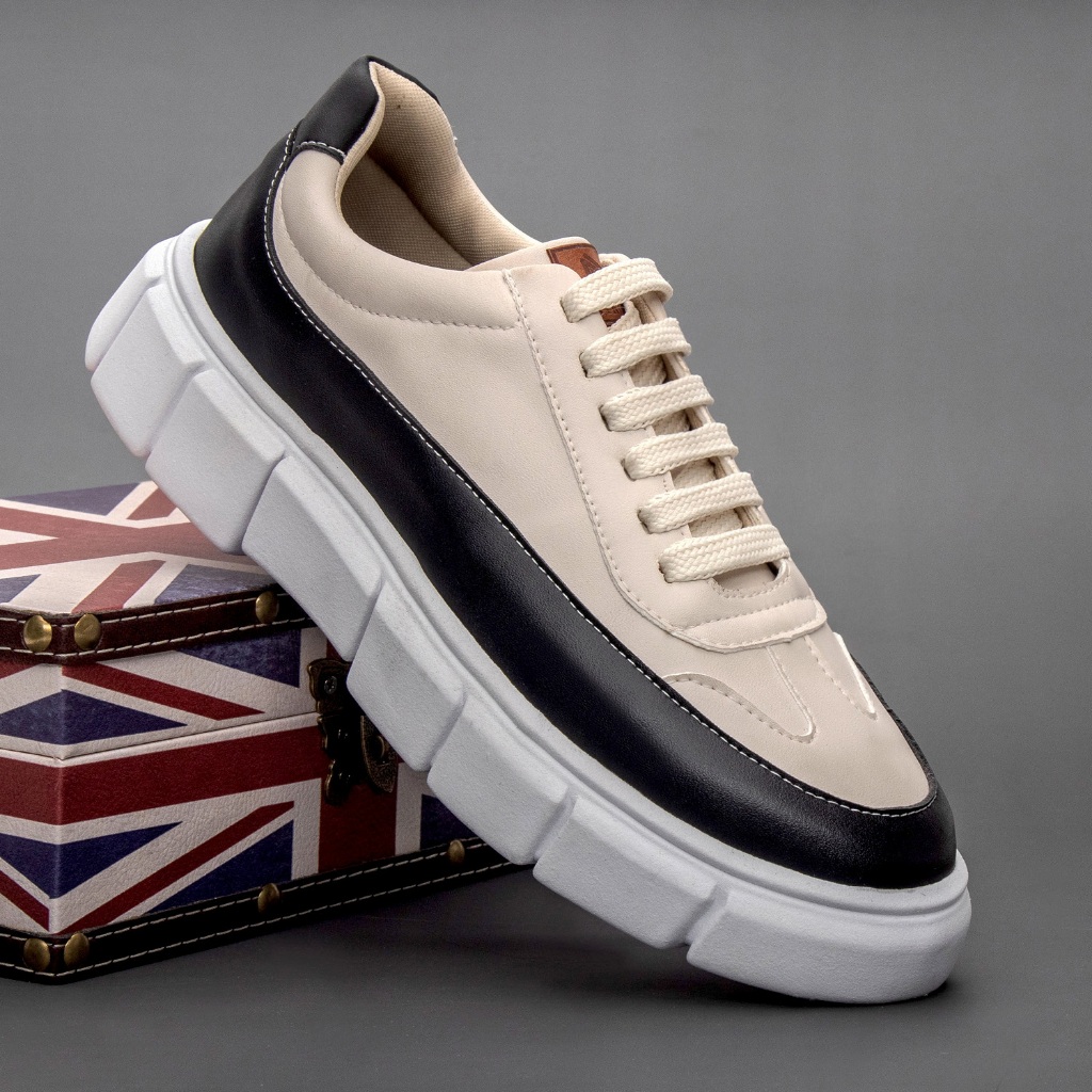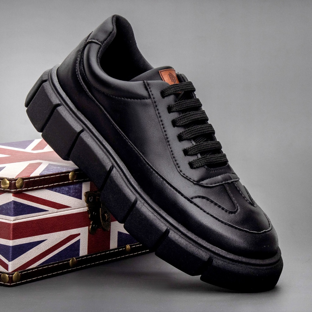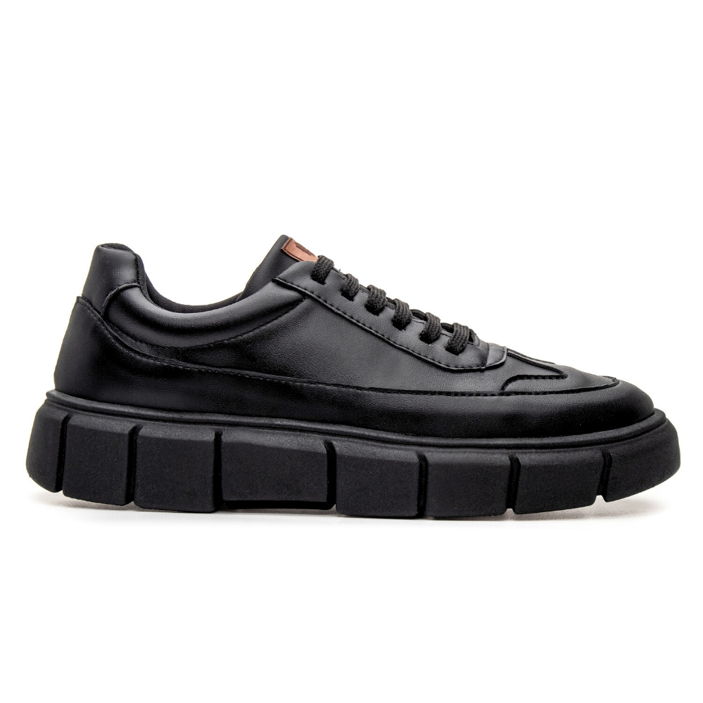 Tenis Oversize Plataforma Nude Preto Melburk Sneaker Masculino Casual Sola Alta Couro Liso Estilo