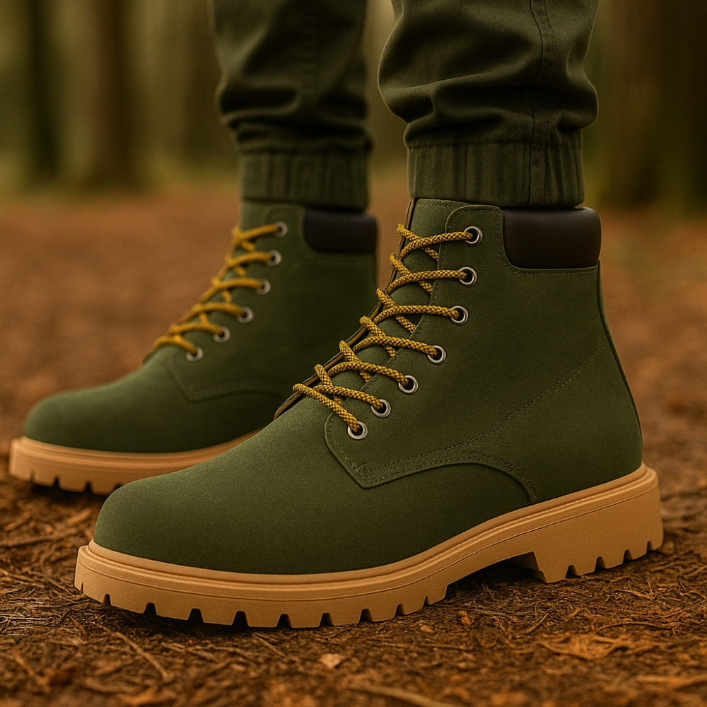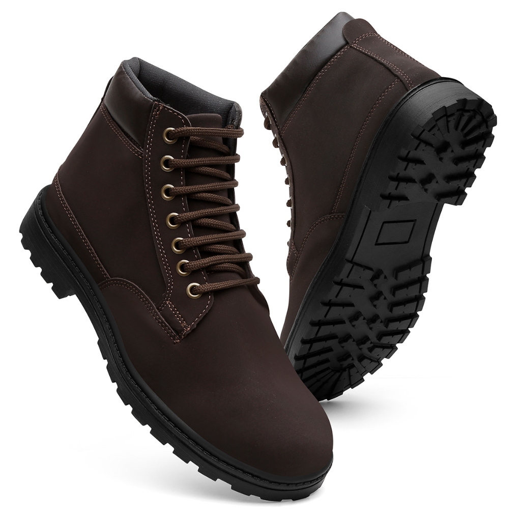 Bota Masculina em Couro Cano Médio Basica Moda Casual Solado Tratorado com Cadarços Coturno Masculino com C.A + Carteira