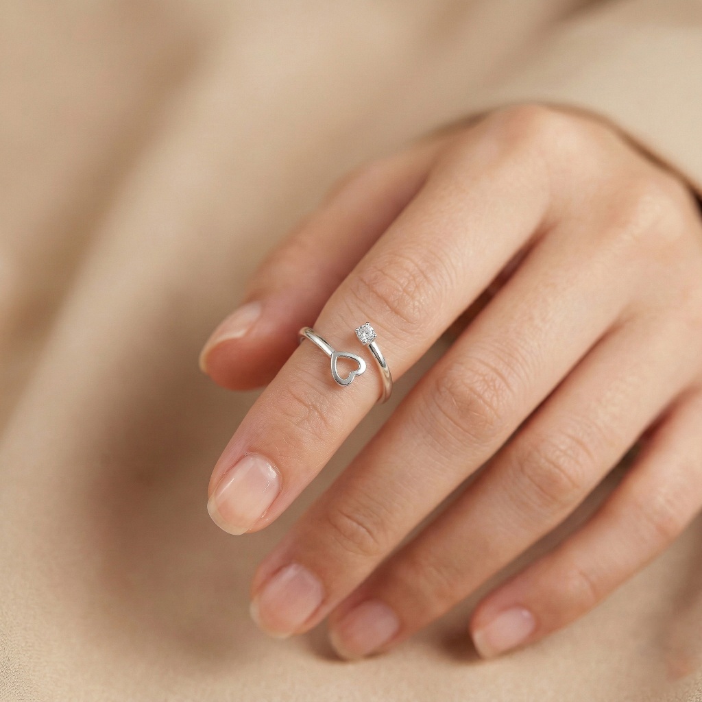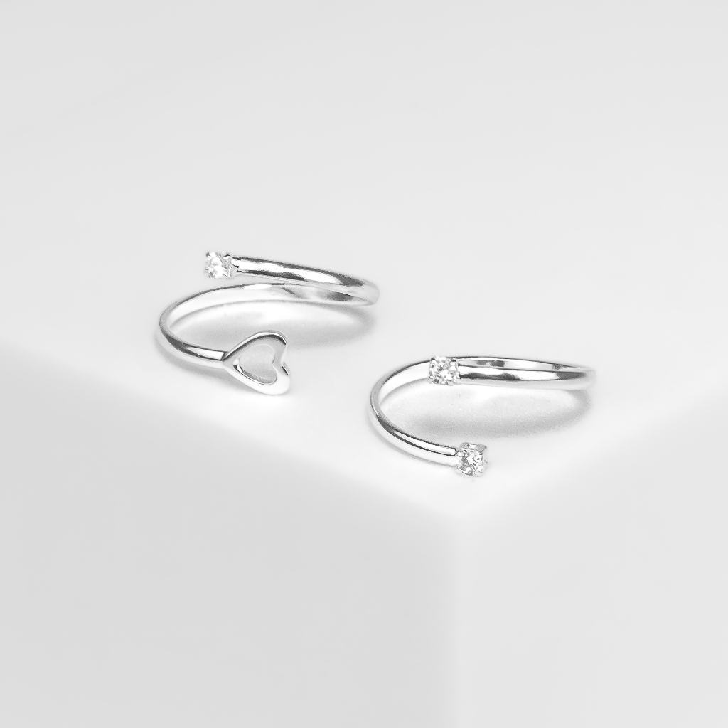 Kit com Dois Anéis de Falange Ajustáveis Coração e Zircônia e Duas Zircônias Banhado a Prata