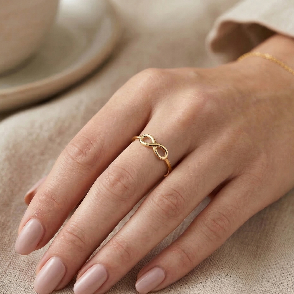 Anel Feminino com Símbolo do Infinito Eterno Banhado a Ouro