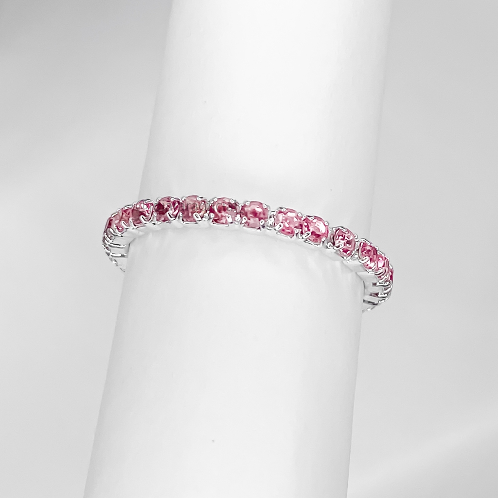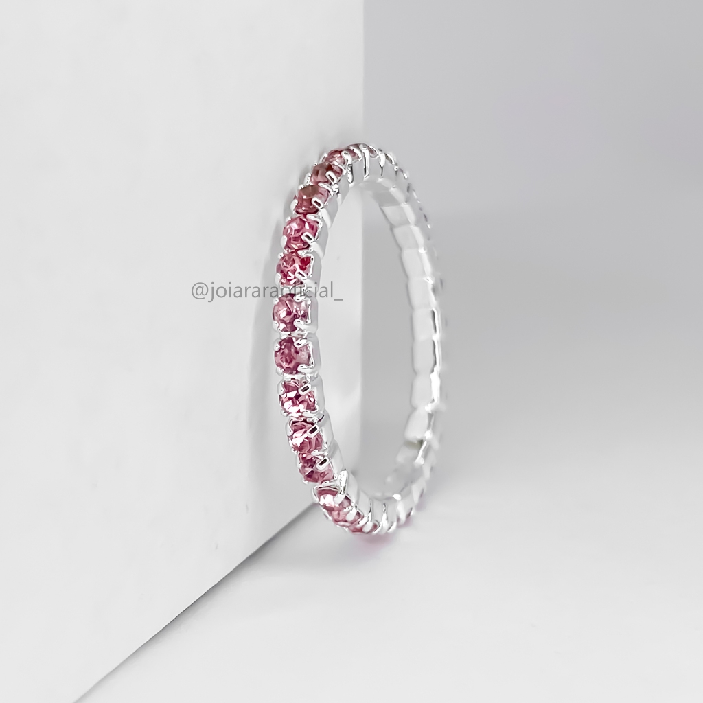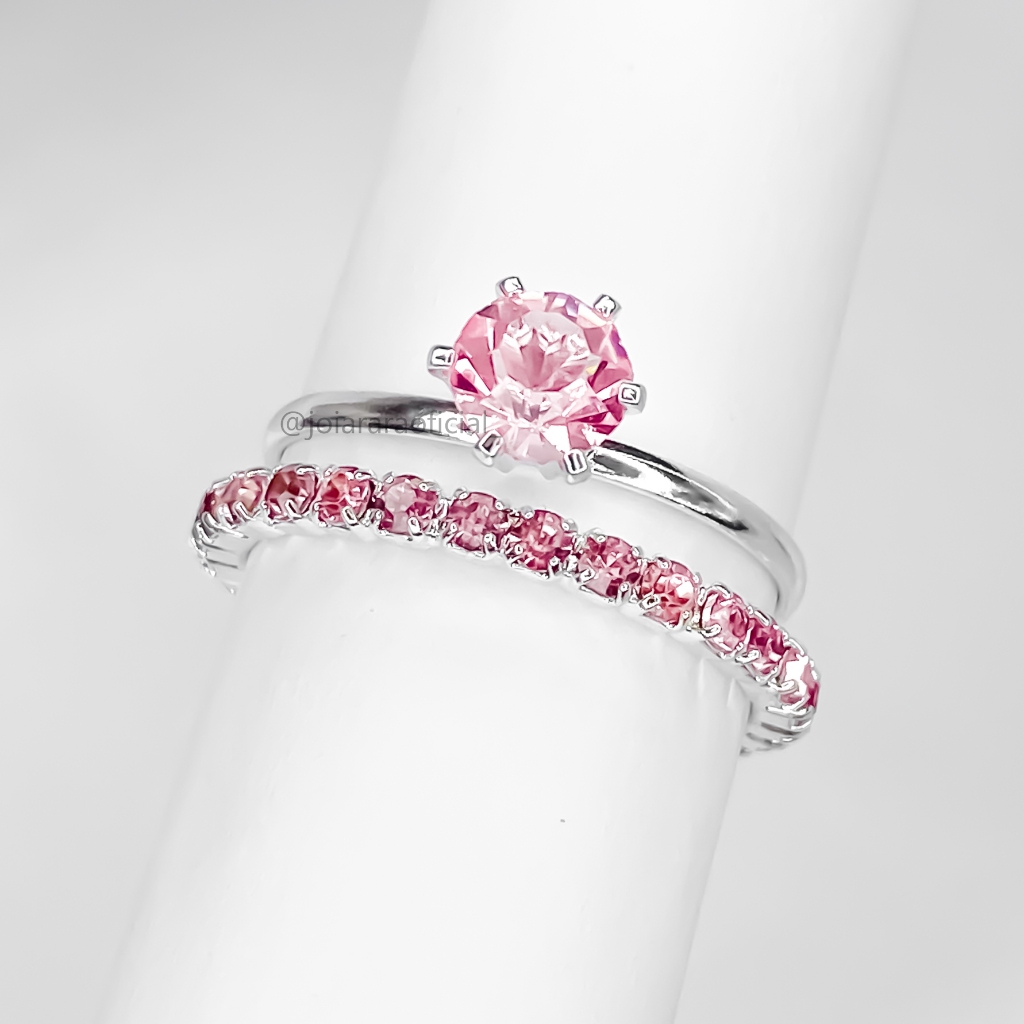 Anel Feminino Aparador de Aliança com Pedra na Cor Rosa Bebê Banhado a Prata