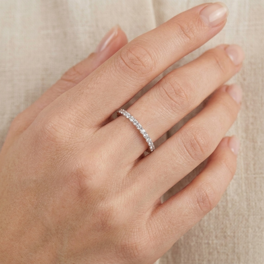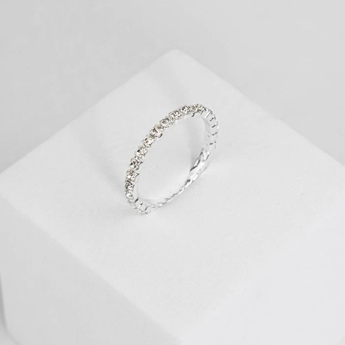 Anel Feminino Aparador de Aliança com Cravejado Brilhante Banhado a Prata