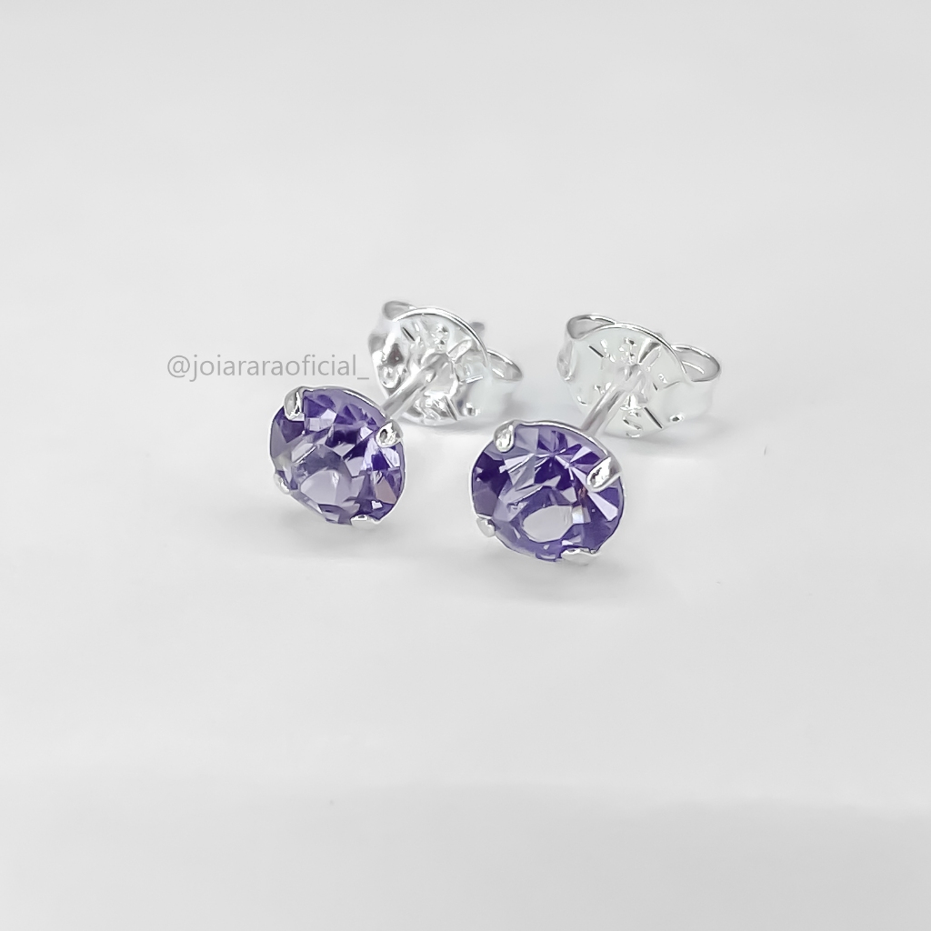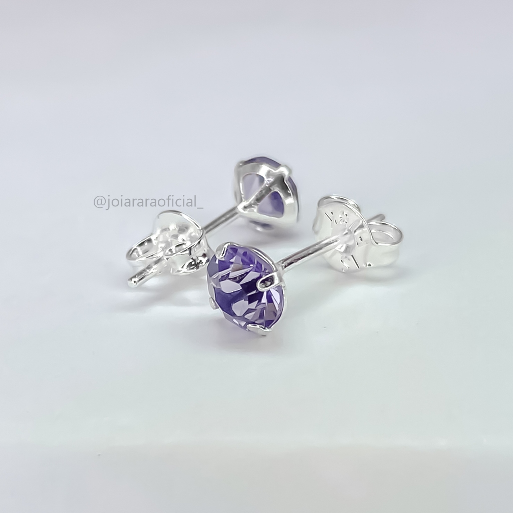 Conjunto de Colar e Brinco Ponto de Luz Banhado a Prata com Pedra na Cor Lilás