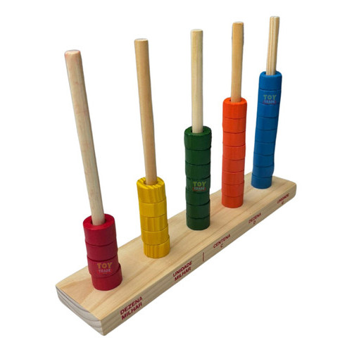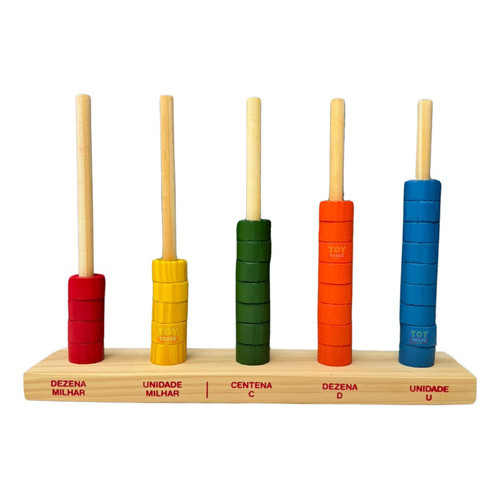 Ábaco Aberto 5 hastes com 50 Argolas coloridas Madeira Brinquedos Educativos - Ábaco Aberto Vertical