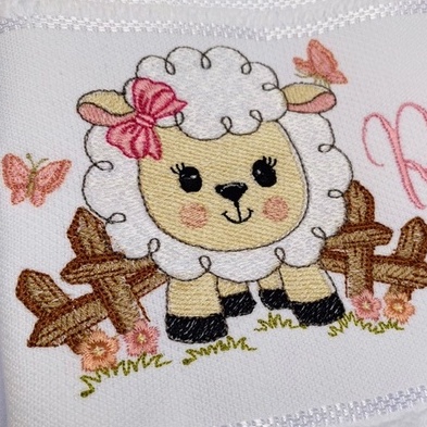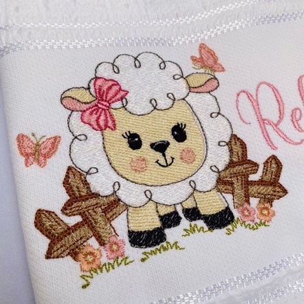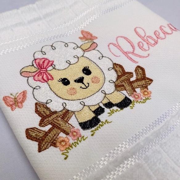 Toalha Bordada Personalizada Ovelha Cenario Fazenda com Nome