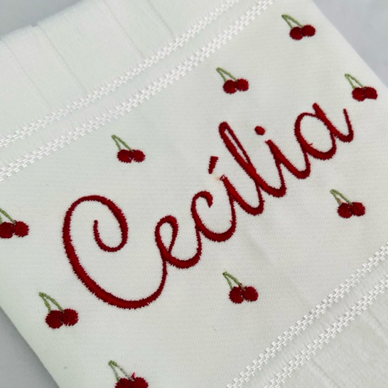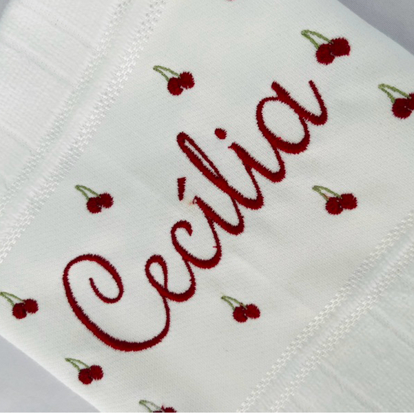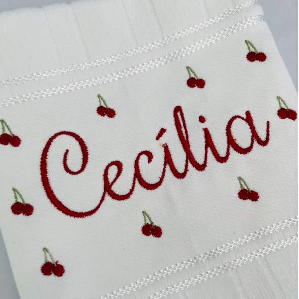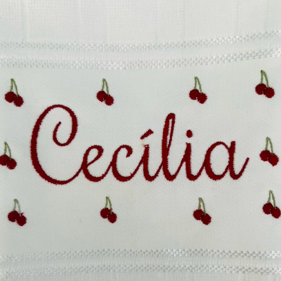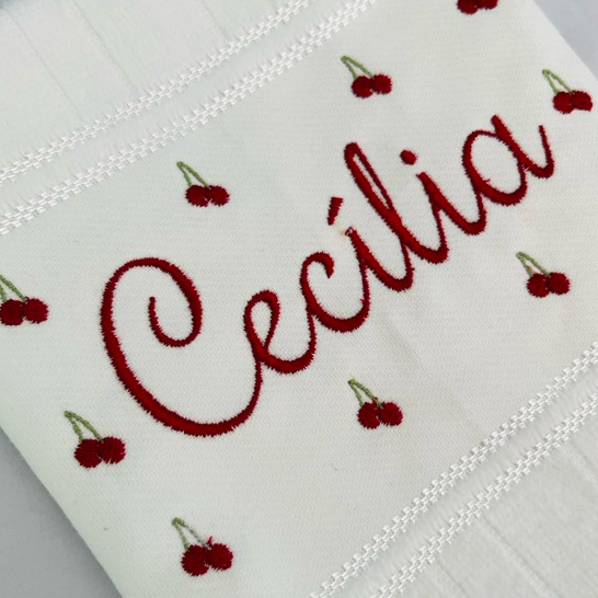 Toalha Bordada Personalizada com Cerejas e o Nome