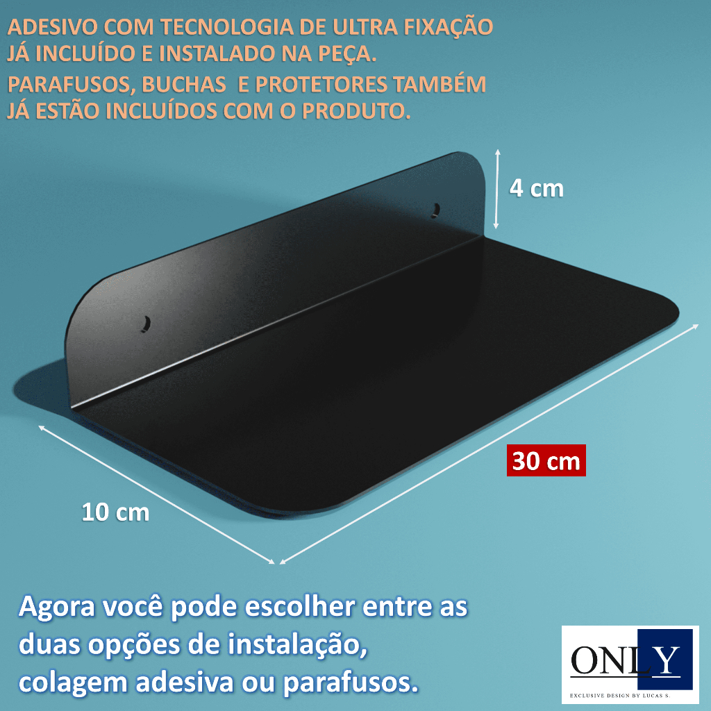 Prateleira Adesiva Flex Grande 30x10 Em Alumínio Preto Fosco Prateleira Decorativa Prateleira Para banheiro para sala