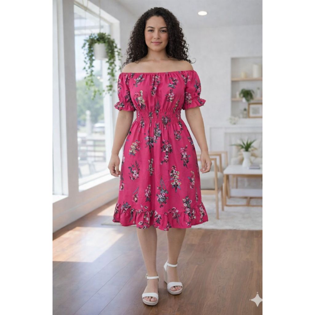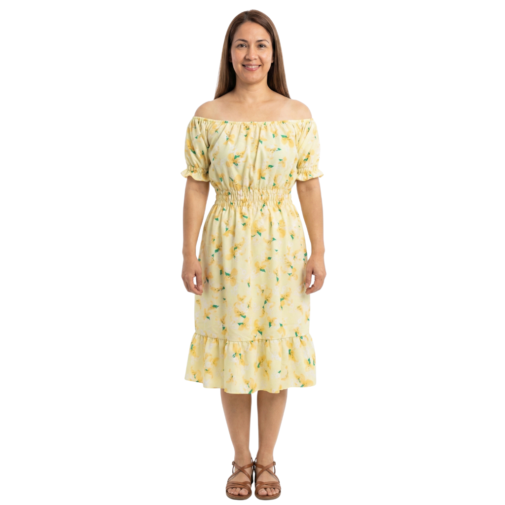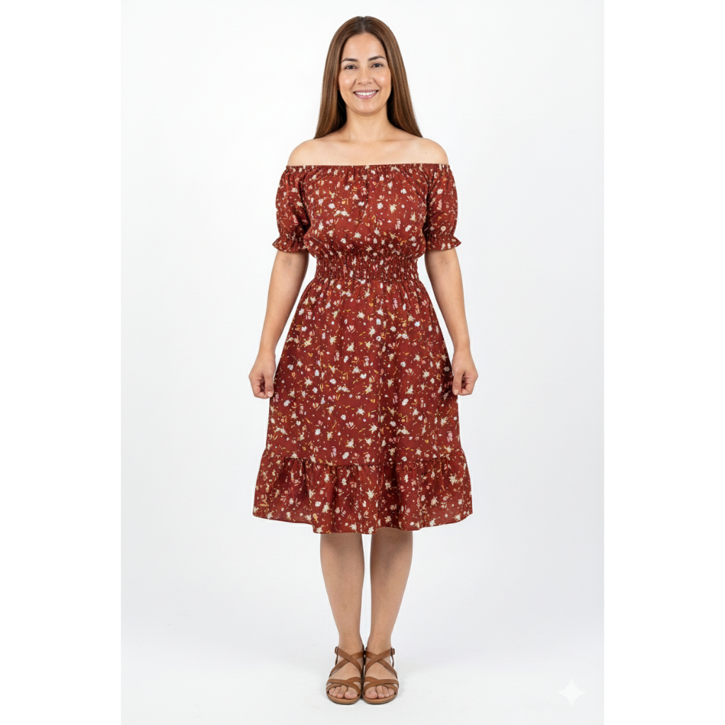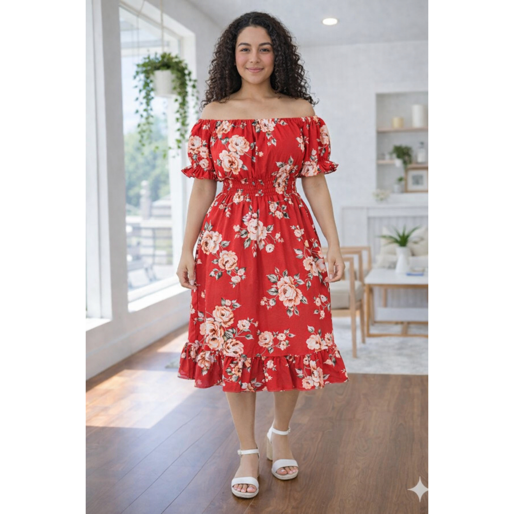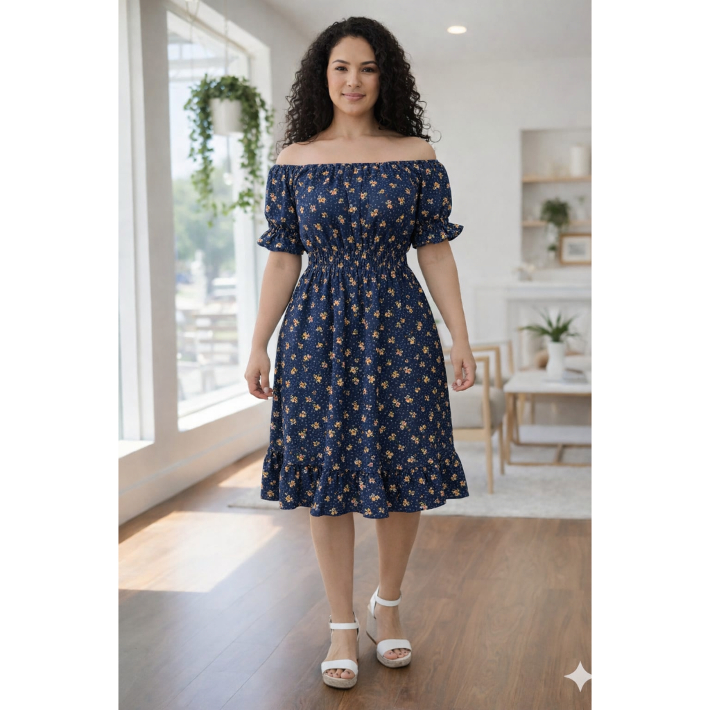 Vestido feminino verão estampado ciganinha cintura com elástico, babado na barra e mangas