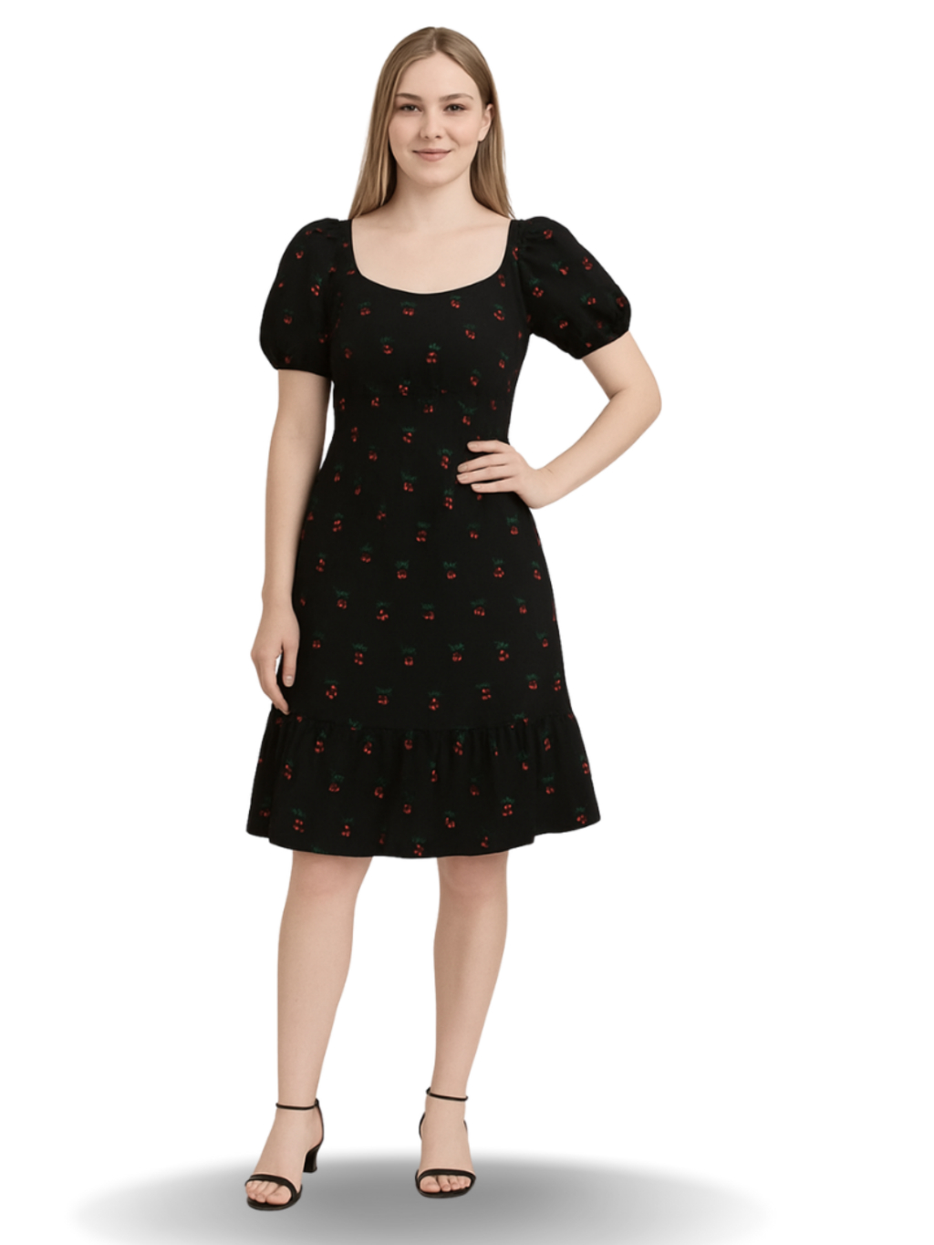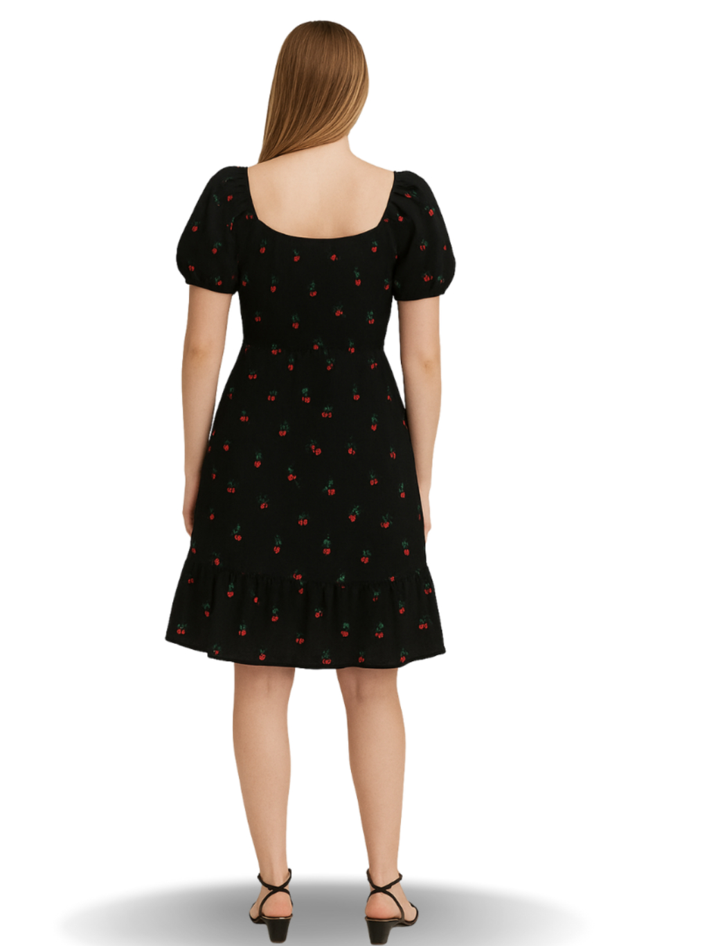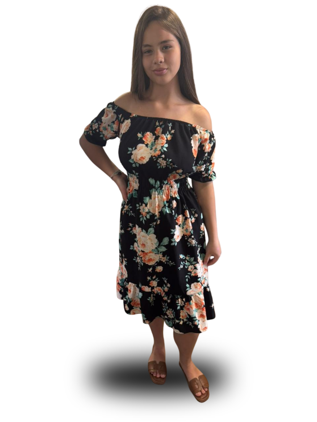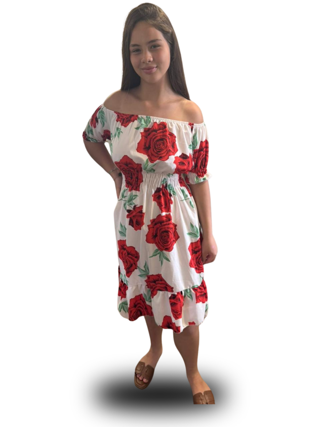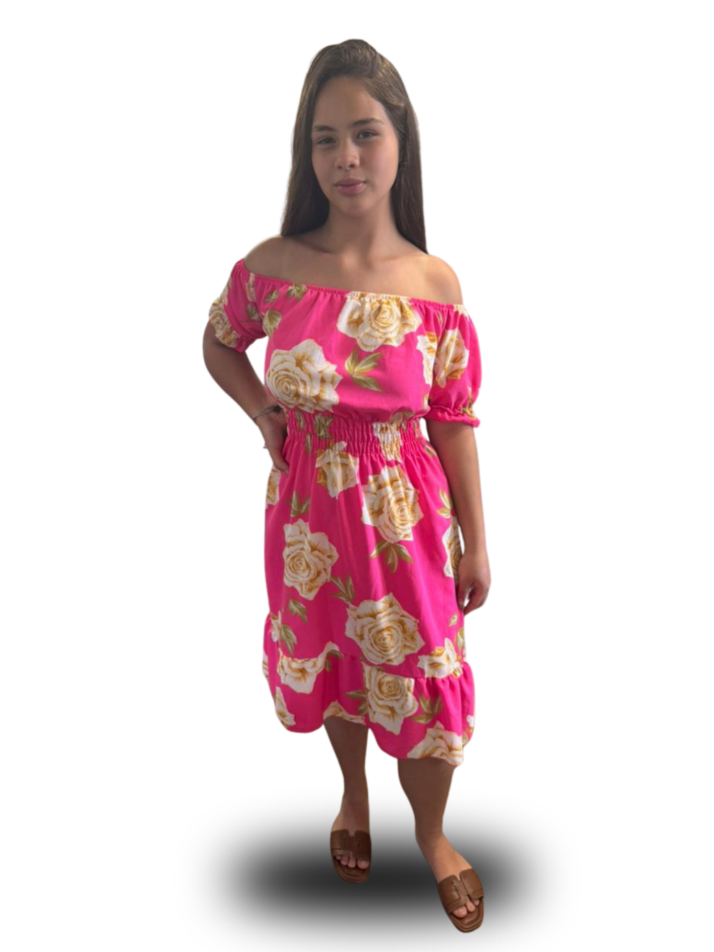Vestido feminino verão estampado ciganinha cintura com elástico, babado na barra e mangas