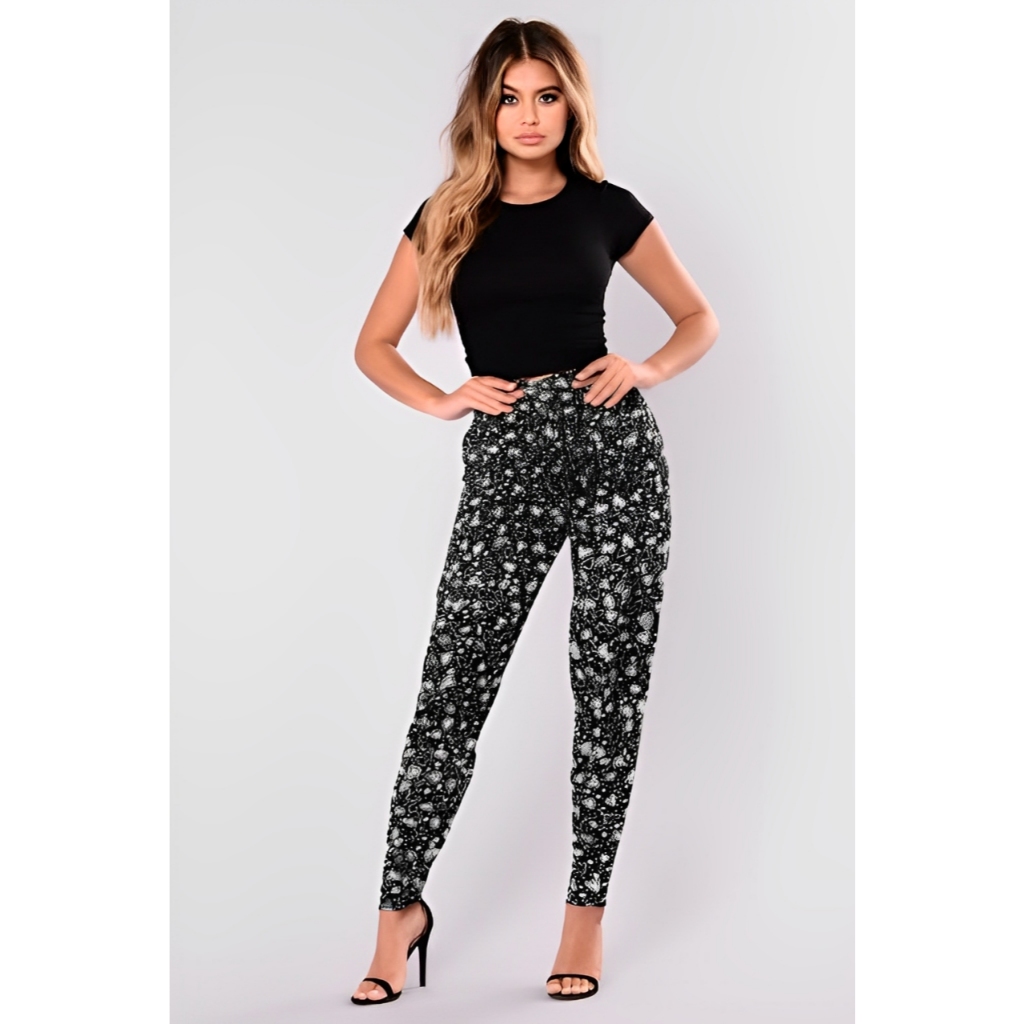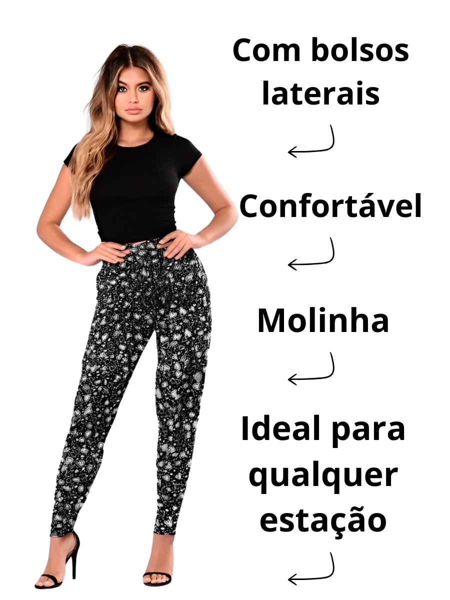 Calça Estampada Feminina Calça Floral Confortável com Bolso