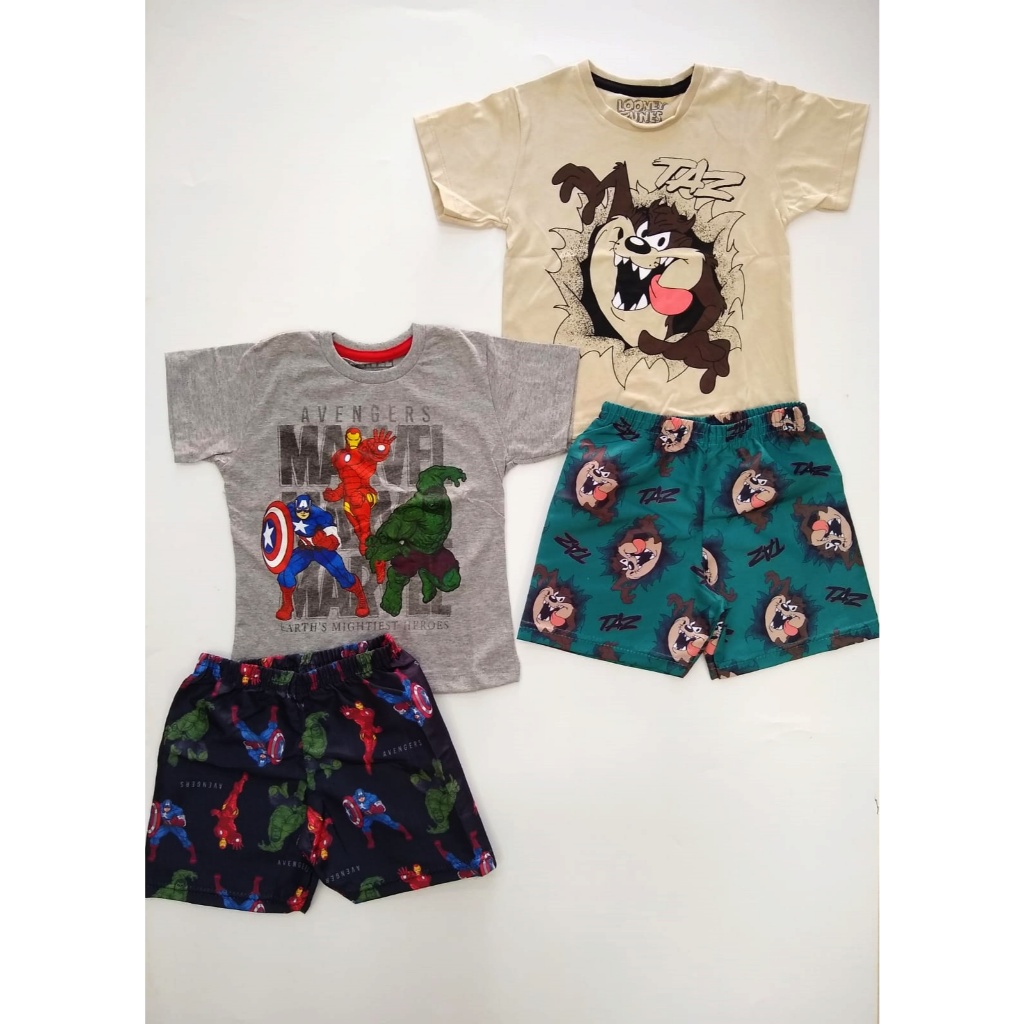 Kit 4 Peças de Roupa Infantil Menino 2 Camisetas e 2 Bermudas estampas sortidas - KIT OFERTA