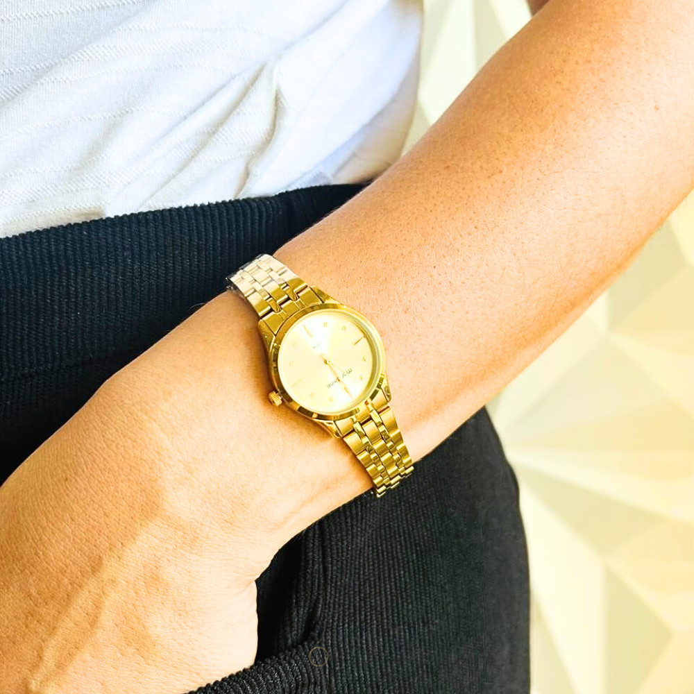 Relógio Mondaine Feminino Analógico Dourado Kit 32611LPMKDE1K1