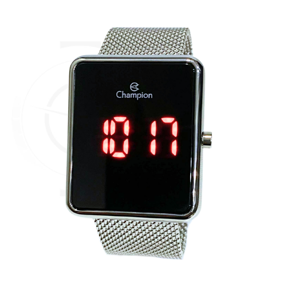 Relógio Champion Feminino Digital Led Vermelho Prateado CH40080T