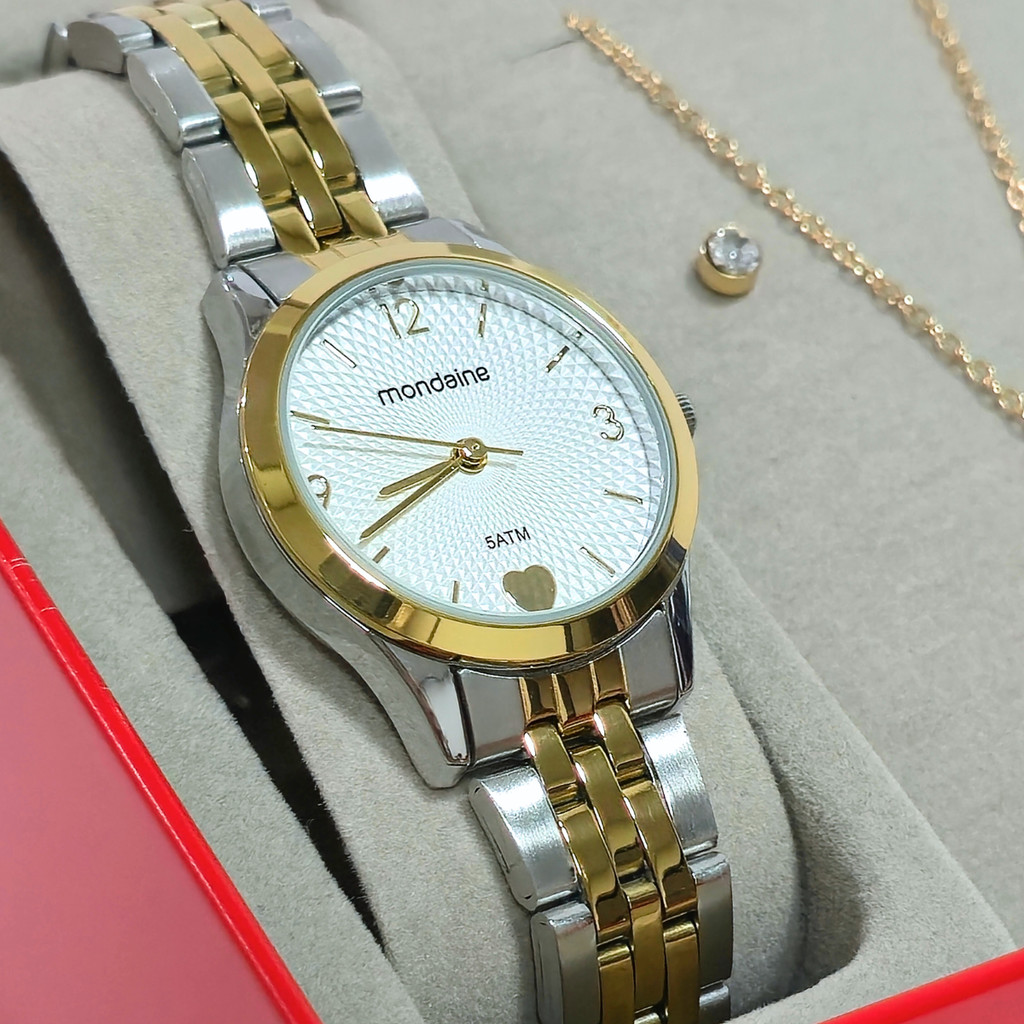 Relógio Mondaine Detalhe de Coração Kit Com Colar e Brinco 32795LPMKBE3K1