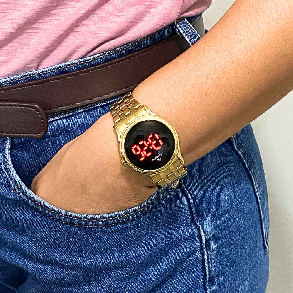 Relógio Champion Feminino Digital Led Dourado CH40204H
