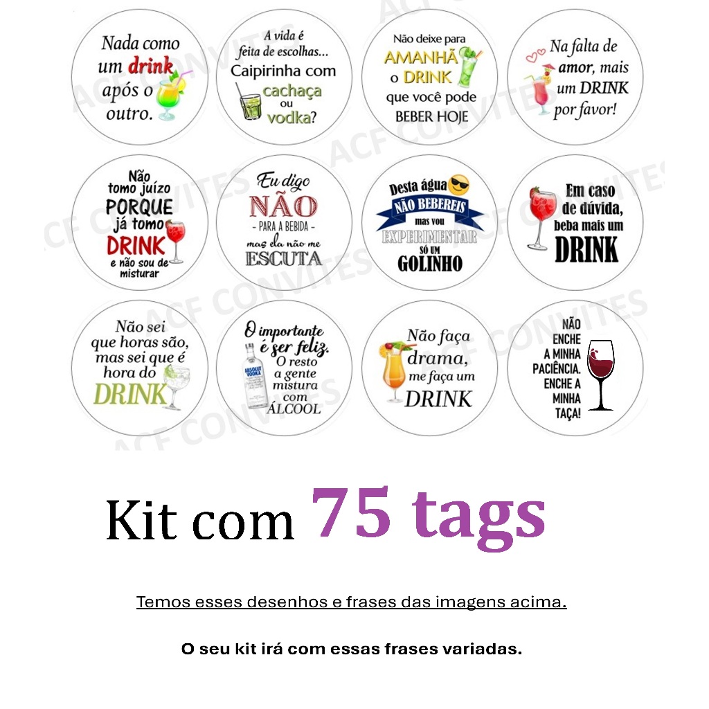 TAG decorativa para taça (opção com mini pregador) - Tag divertida drink gin bebidas - aniversário casamento formatura