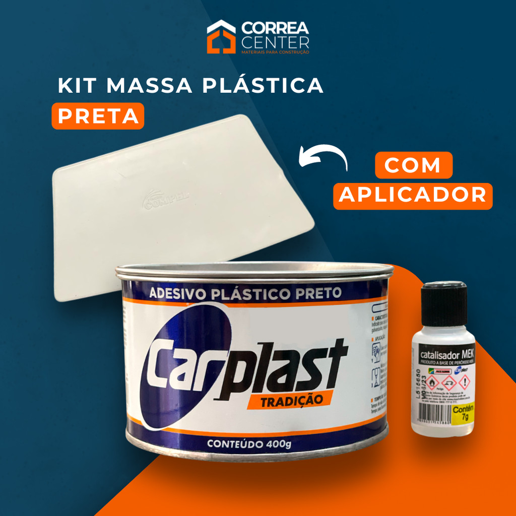 Kit Massa Plastica + Aplicador Espatula 400g C/ Catalisador Funilaria Reparo Fibra Parachoque Cinza Branca Preta
