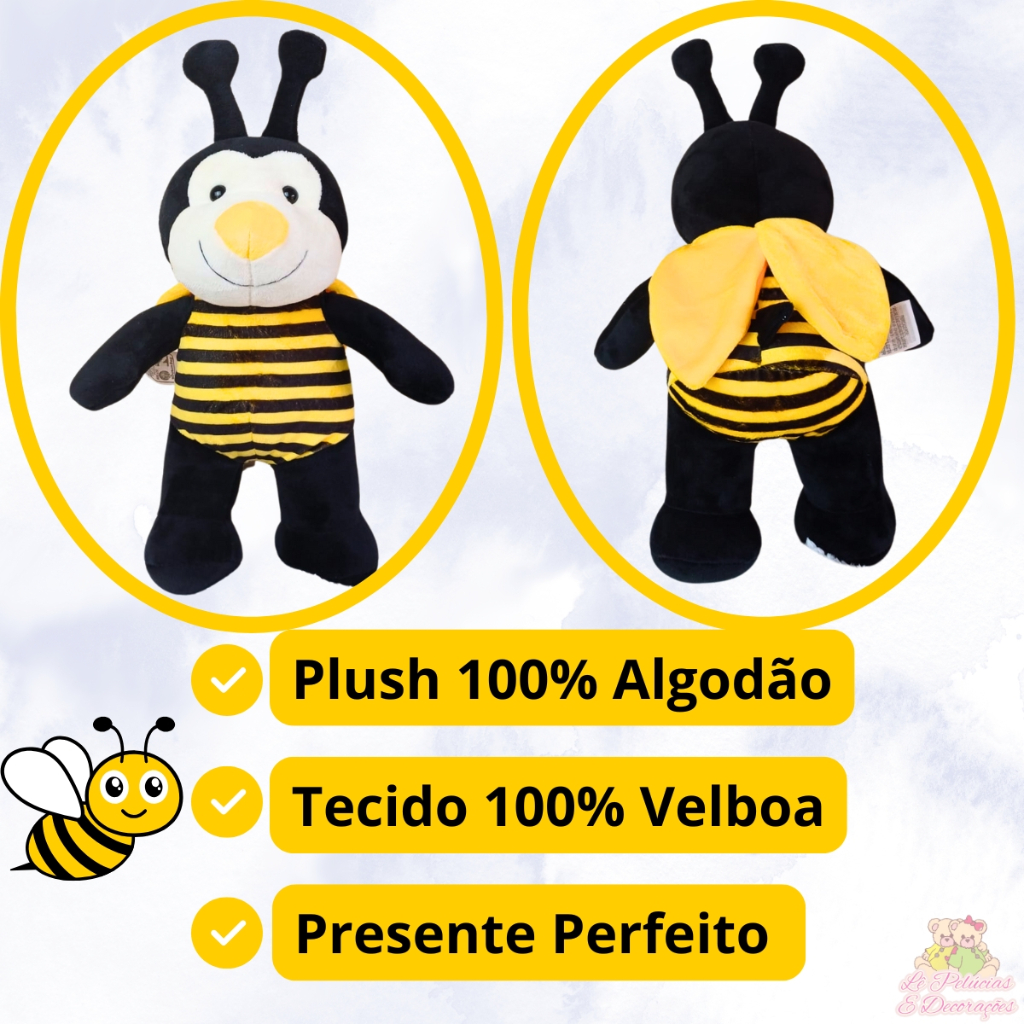 Abelha De 30cm Presente Pelúcia Velboa Antialérgico Bichinhos Para Criança Bebe Brinquedo Amarela