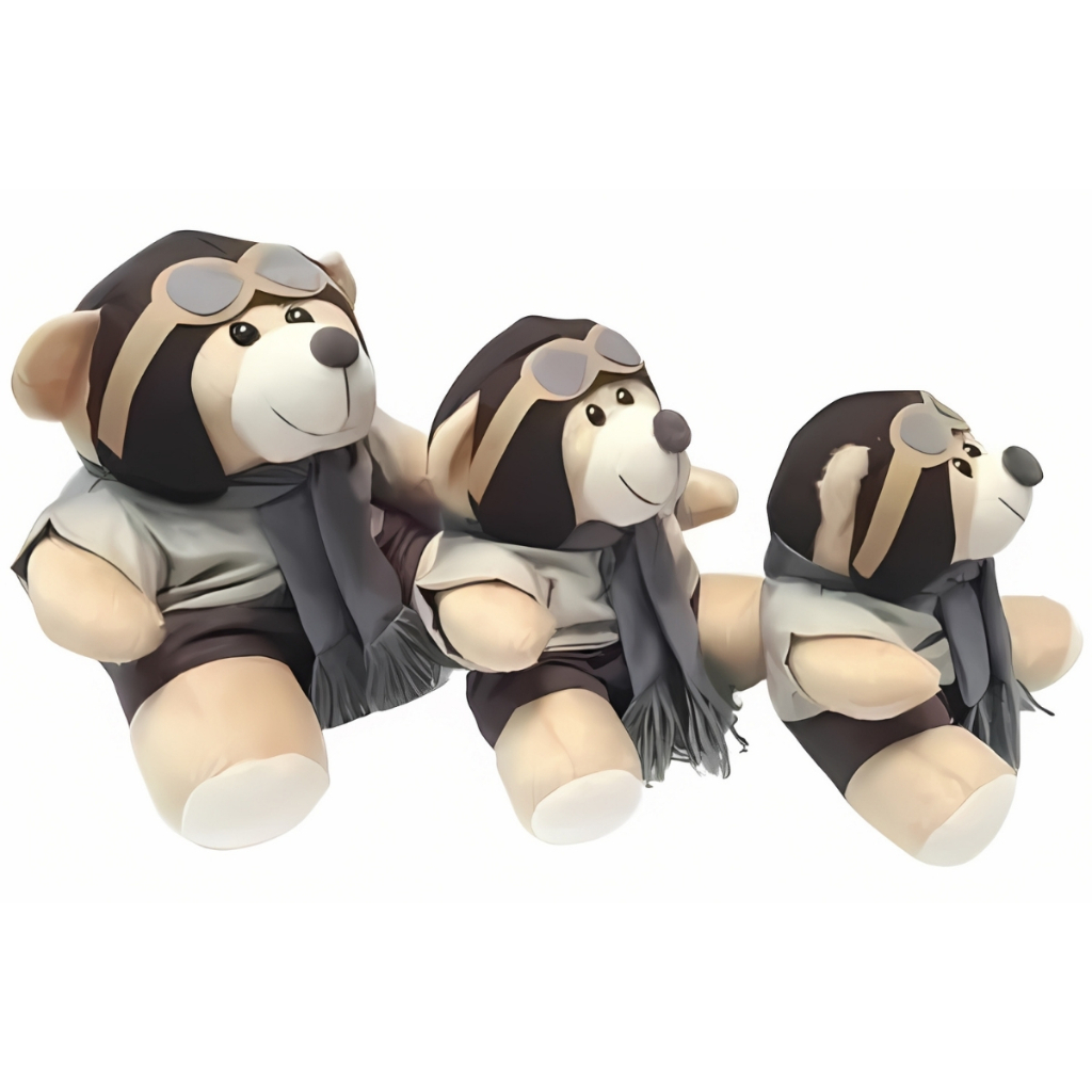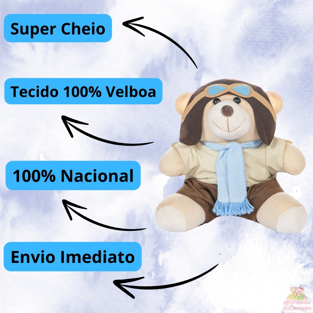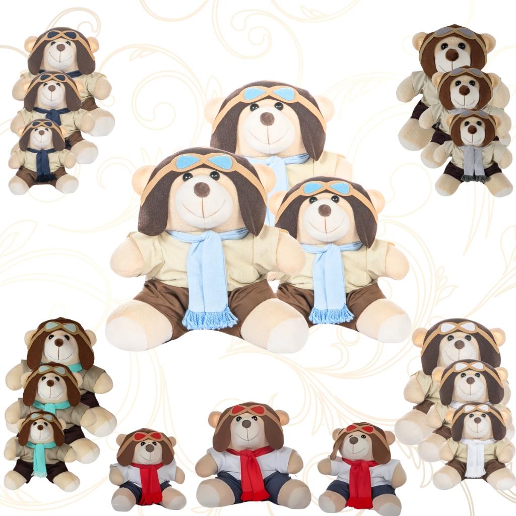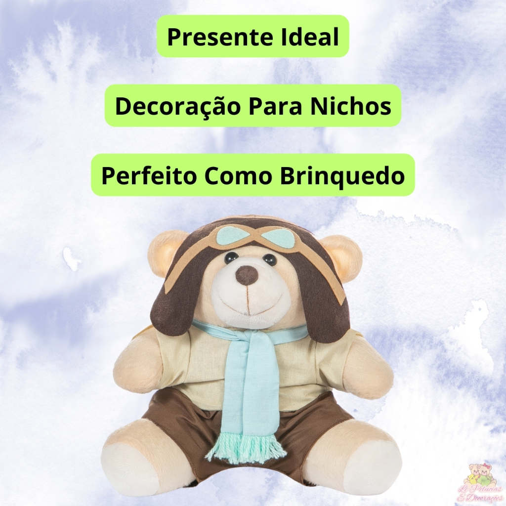 Trio De Ursinhos Aviadores Menina Menino Pelúcia Para Decoração Nicho Presente Deluxe Premium PMG