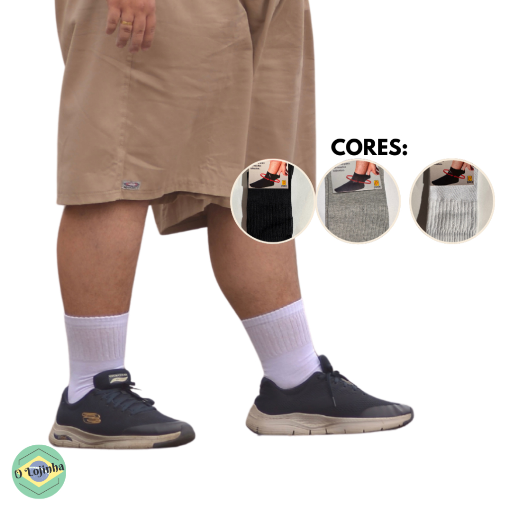 Meia Plus Size Cano Longo Algodão Unissex Lisa Esporte Casual