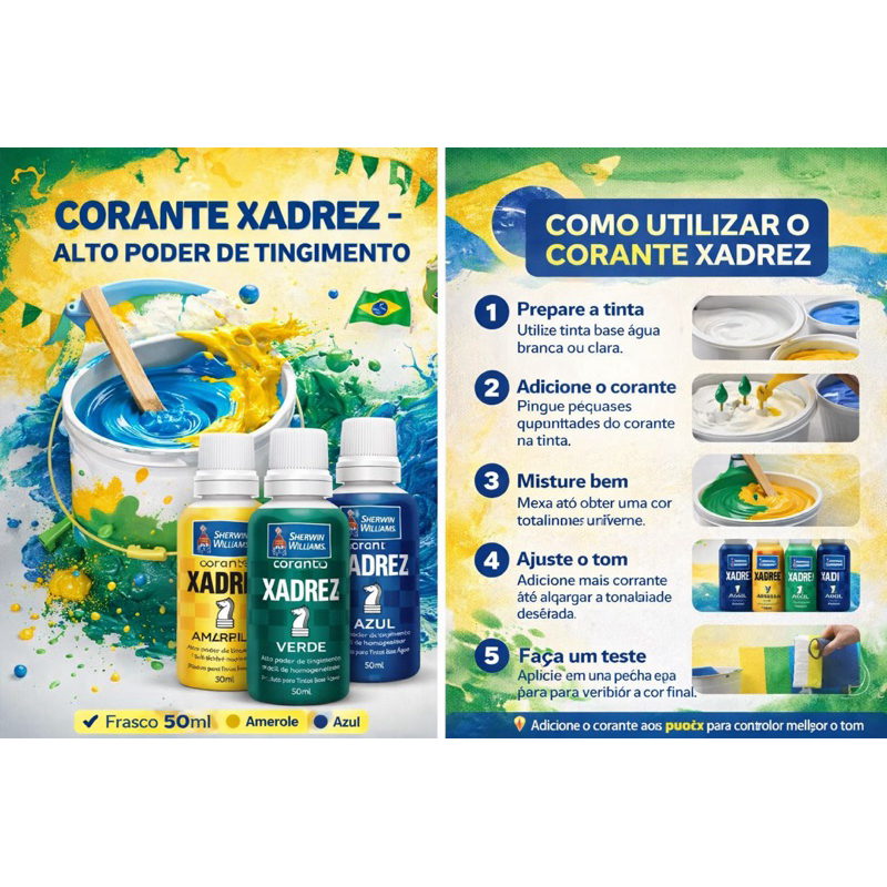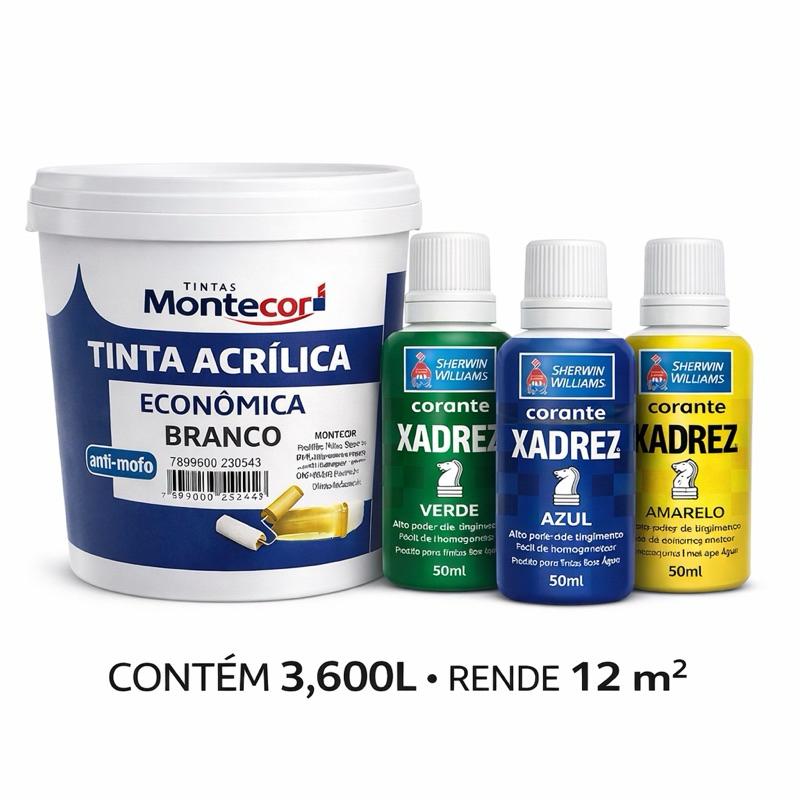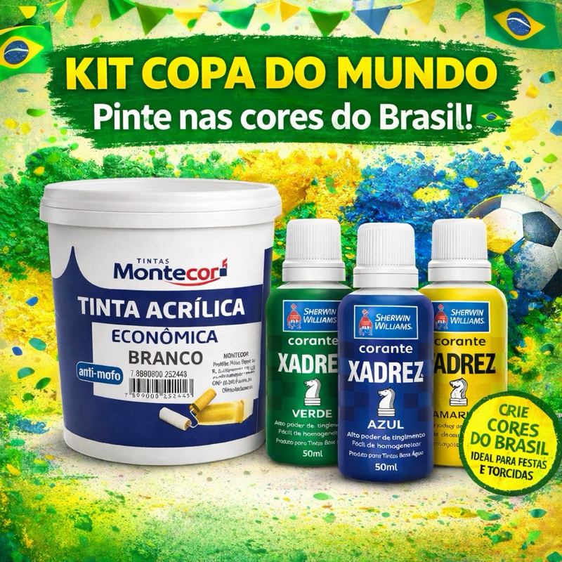 Kit Tinta Acrílica Branco + 3 Corantes 50ml Seleção Brasil Copa Mundo