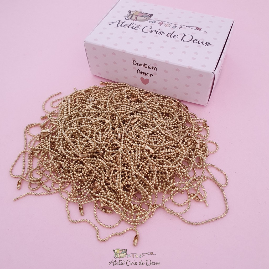 Corrente de Bolinha completa com fecho canoa - Kit com 5 unidades