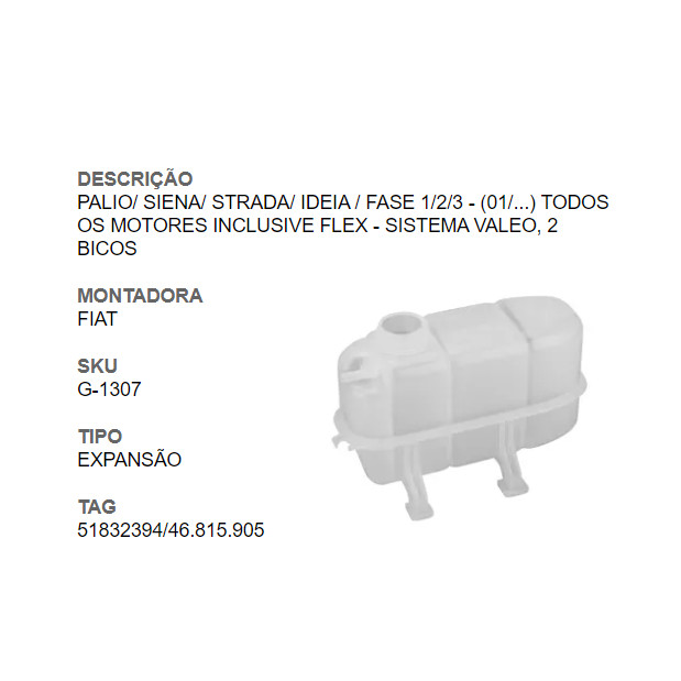 Reservatorio Agua Palio Strada 1.8 2005 A 2010 Sistema Valeo