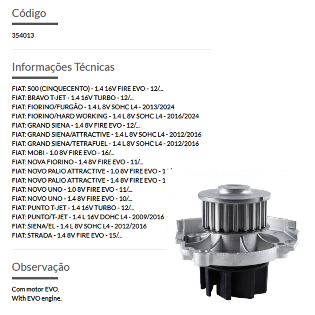 Bomba Dagua Palio Uno Grand-Siena Fiorino Punto T-Jet Evo