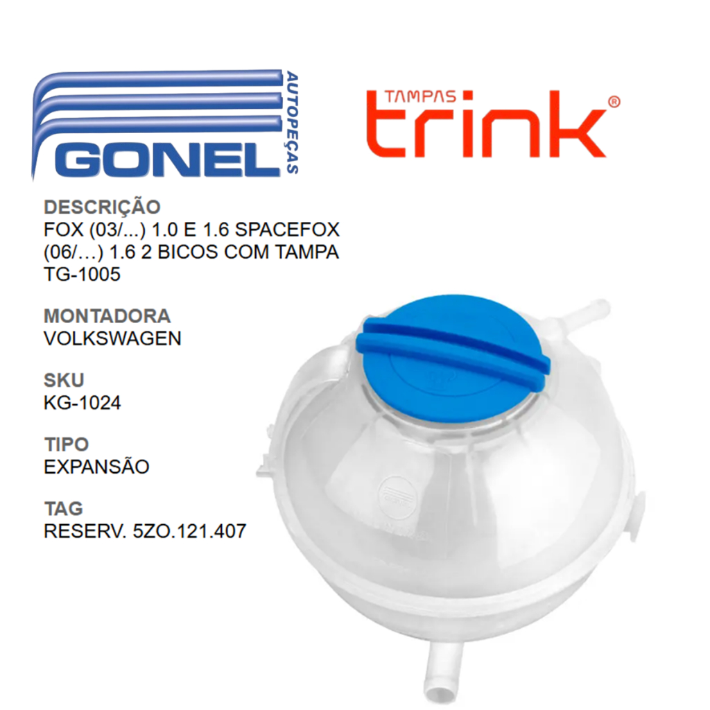 Reservatório Agua Radiador Fox Crossfox 2 Bicos C Tampa Sem Sensor