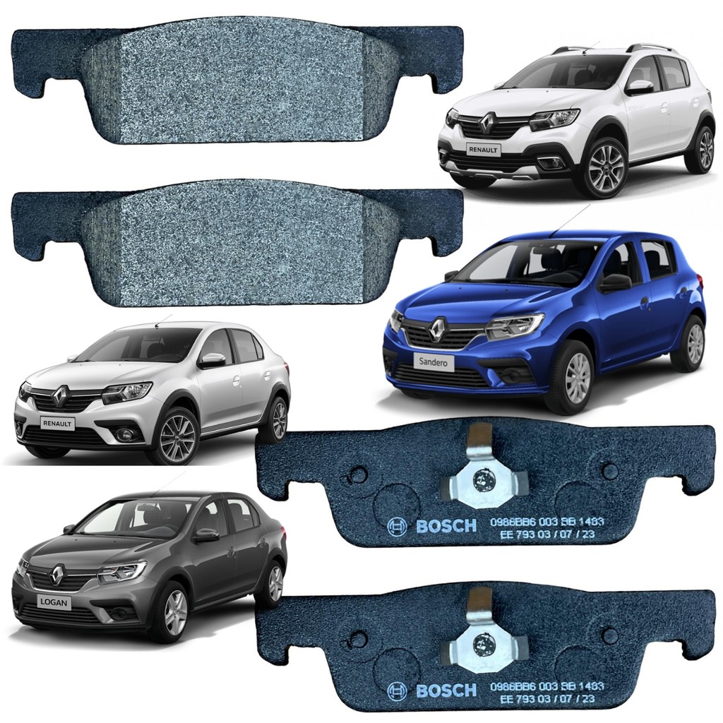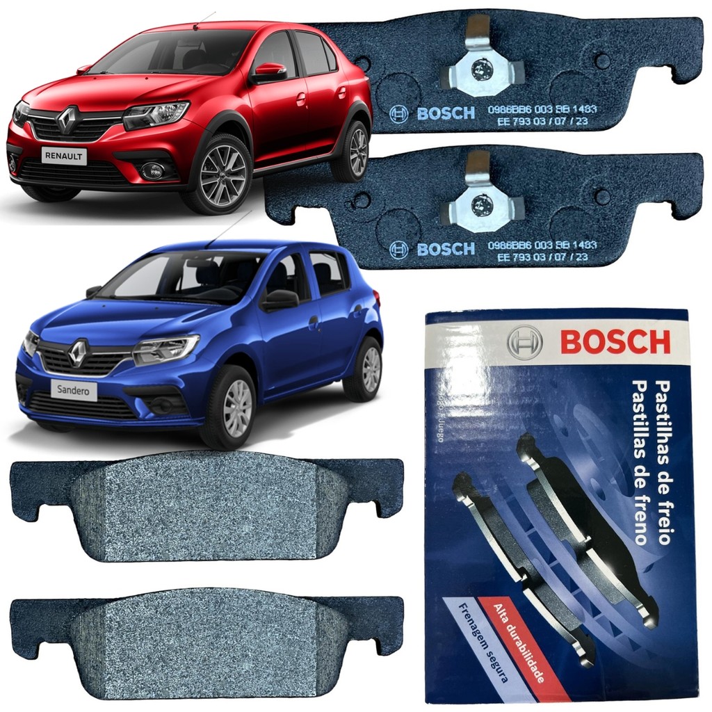 Pastilha De Freio Sandero Logan 1.0 e 1.6 2014 2015 2016 2017 2018 2019 2020 a 2024 Dianteira Bosch