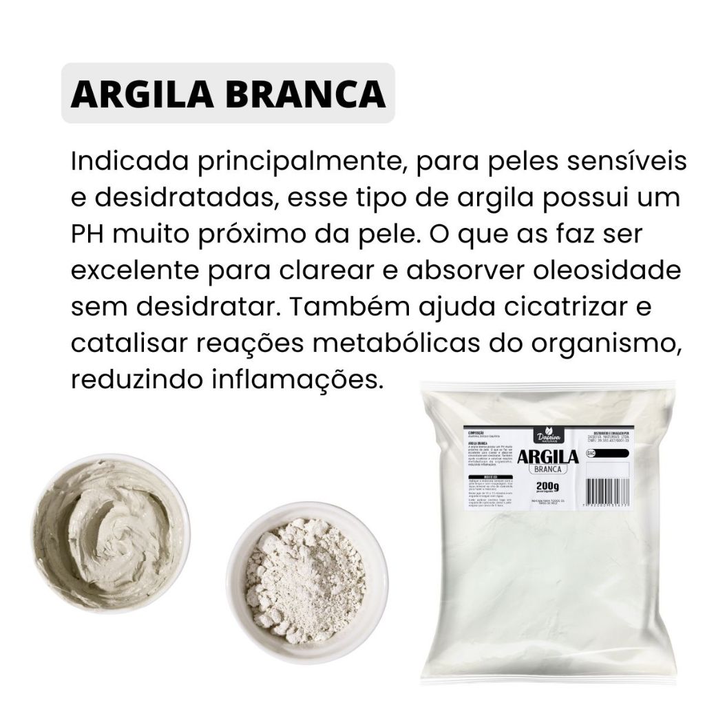 Argila Branca 200g + Dolomita Clareadora 200g + Óleo Rosa Mosqueta Rubiginosa (Super Clareador)