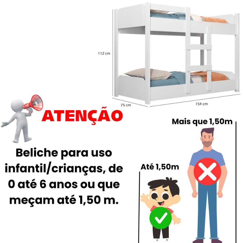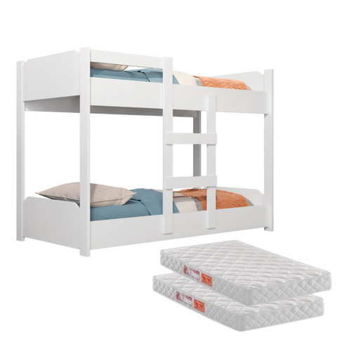 Beliche Infantil Reforçada com Escada e Grade Proteção Lateral 100% MDF Incluso 2 Dois Colchões