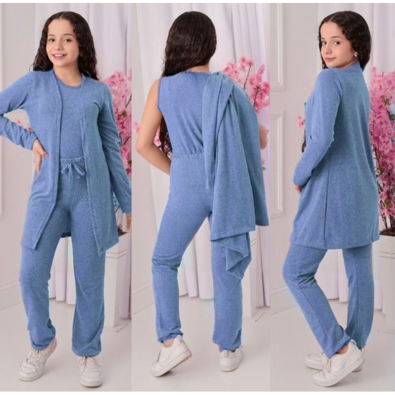 Conjunto Lanzinha Juvenil trio 3 peças cardigam, calça e regata Meia Estação- Inverno 2025