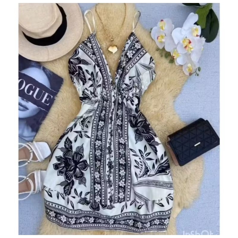 Vestido Femenino Curto Estilo Indiano Estampa Inspiração Amarração nas costas e pescoço Verão 2026