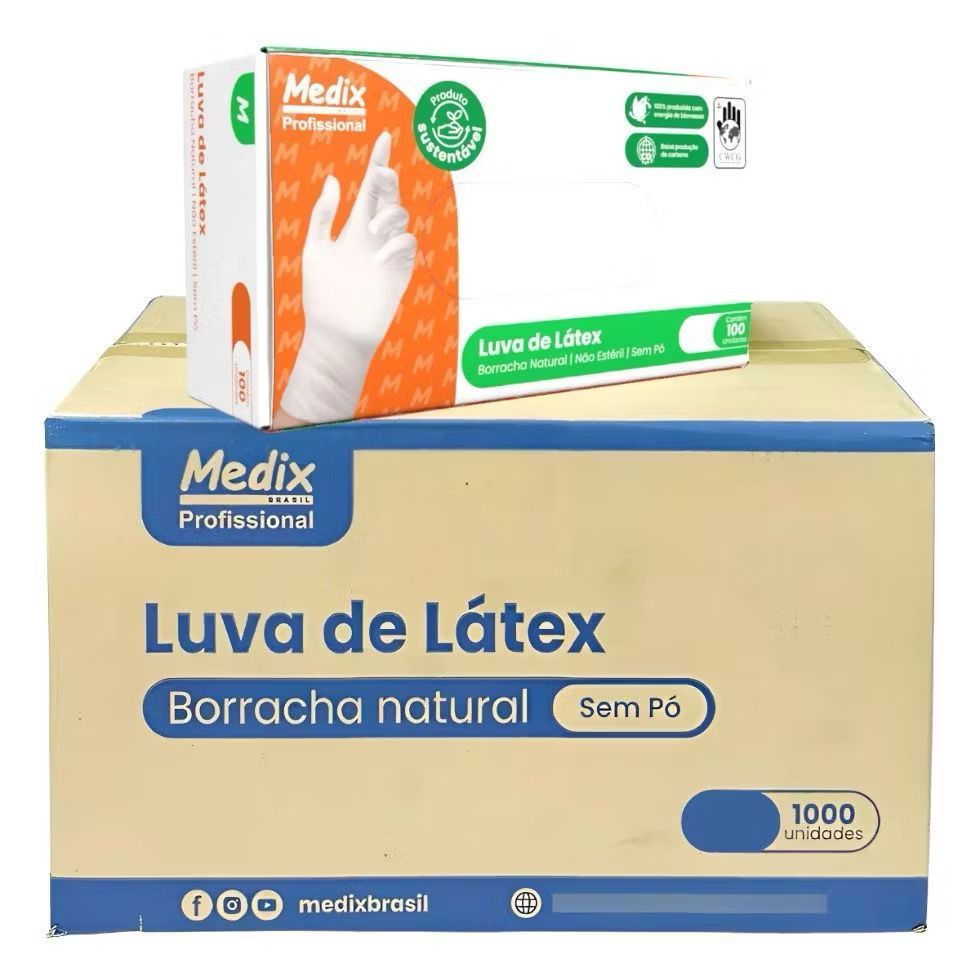 Luva Látex sem PÓ Medix 100 Unidades Descartável