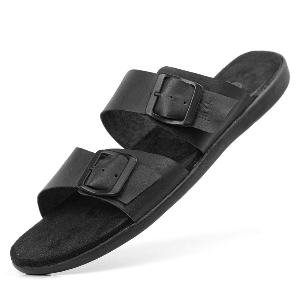 Chinelo Masculino Tiras Fivela em Couro Super Confortável Promoção LF4