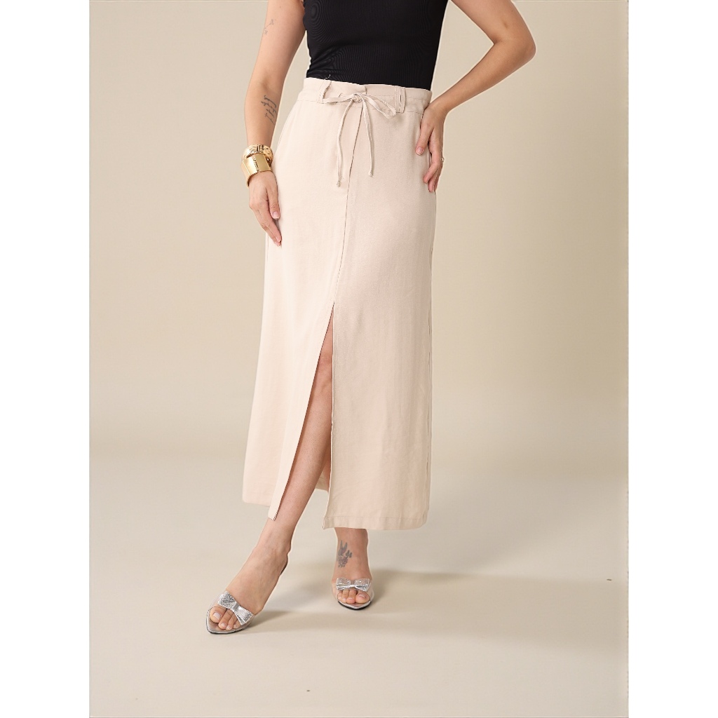 Saia Midi de Marrante com Amarração e Fenda Frontal Elegância Moderna COD 183
