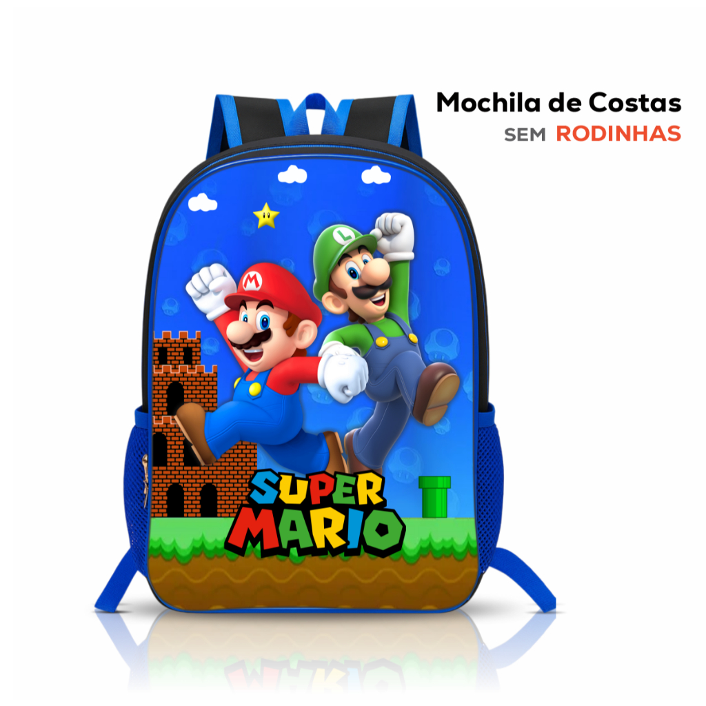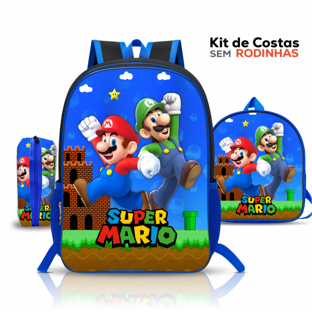 Kit Mochila Escolar Super Mario Infantil - com Lancheira e Estojo - Rodinhas - Menino - Masculina
