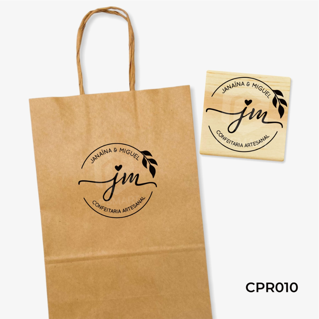 Carimbo Personalizado Logomarca Artesanal Vários Tamanhos Logo para Sacola Kraft Tag Envelope Tecido Caixa Papel