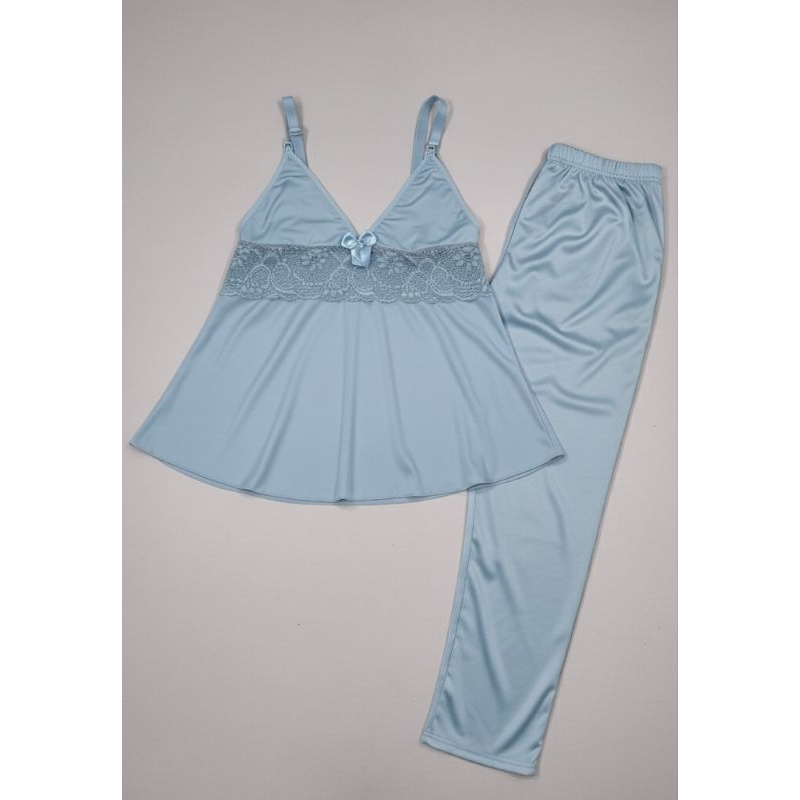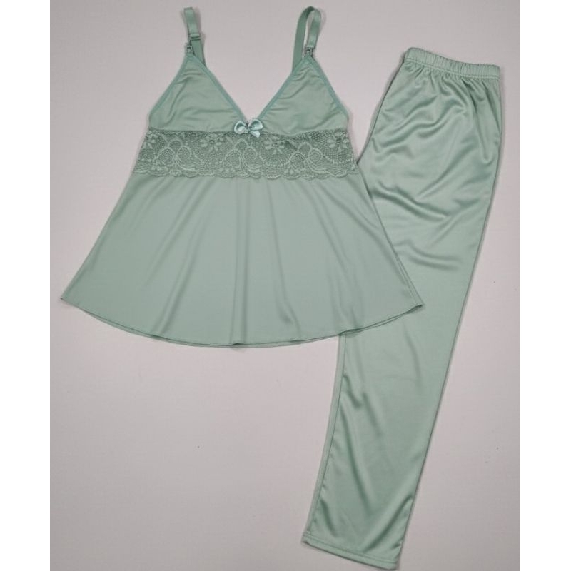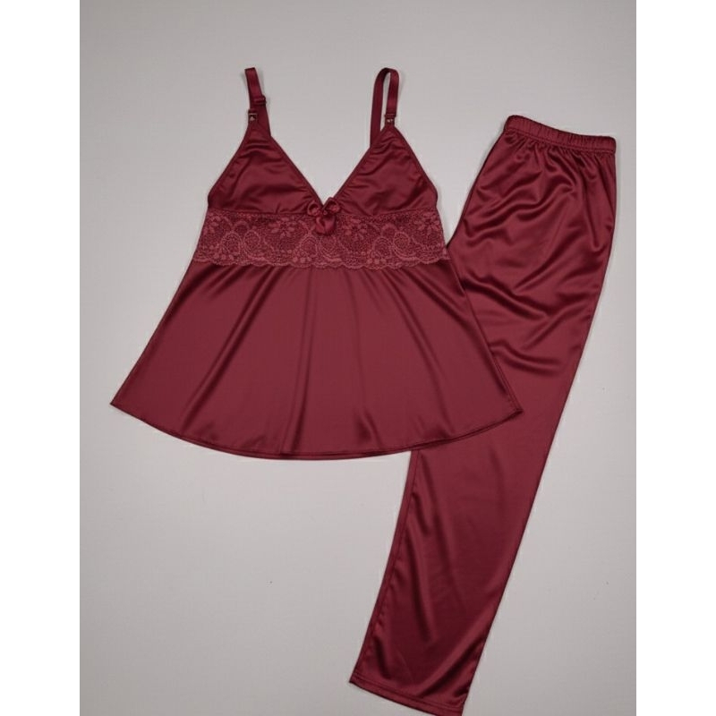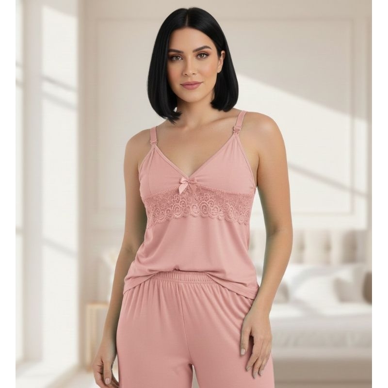 PIJAMA PÓS PARTO DE AMAMENTAÇÃO Renda Blusa com Alça Reforçada com Click Roupa Maternidade Baby Doll