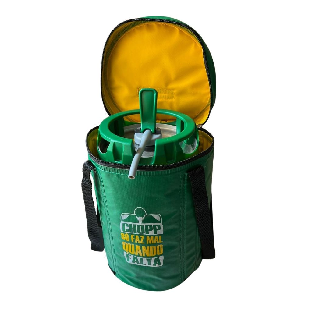 Kit Cooler Bolsa Térmica Verde 5L com 4 Cartela Gelo em Gel Barril Chopp 5 Litros Envio Já