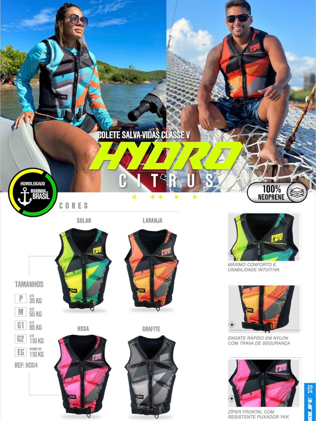 Colete Salva Vidas Hydro Citrus Atlantis Original Homologado Marinha do Brasil Esportivo