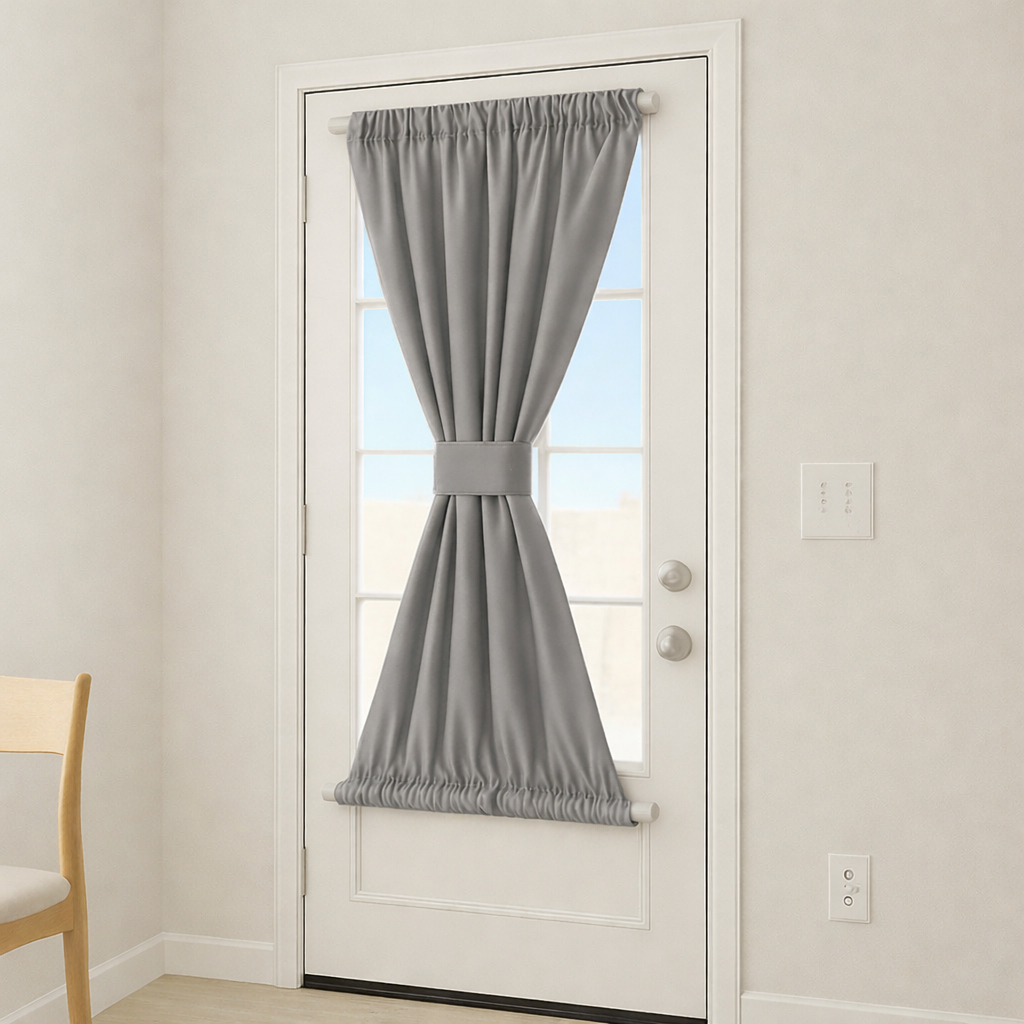 Cortina para Porta de Vidro 80cm L x 1,40m A - Tecido Oxford Palha com Abraçadeira de Velcro
