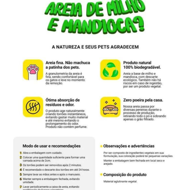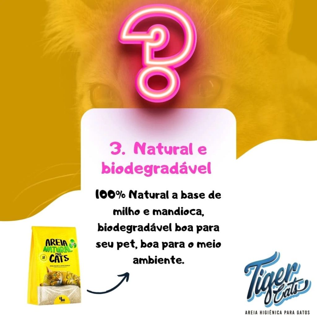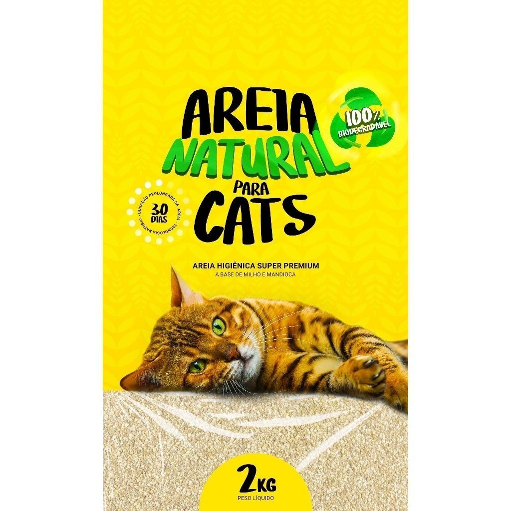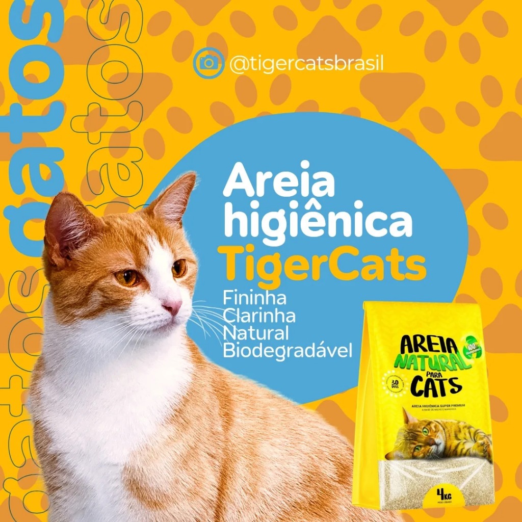 KIT COM 4 AREIA HIGIÊNICA NATURAL BIODEGRADÁVEL MILHO E MANDIOCA PARA GATOS TIGER CATS 2KG