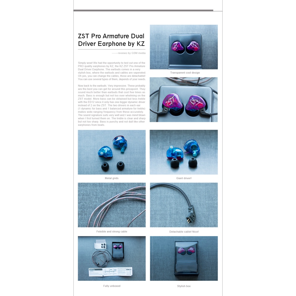 KZ ZST Fone De Ouvido Com Duplo Driver Roxo Cabo Destacável No Monitores De Áudio Isolamento Acústico Fones Esportivos HiFi