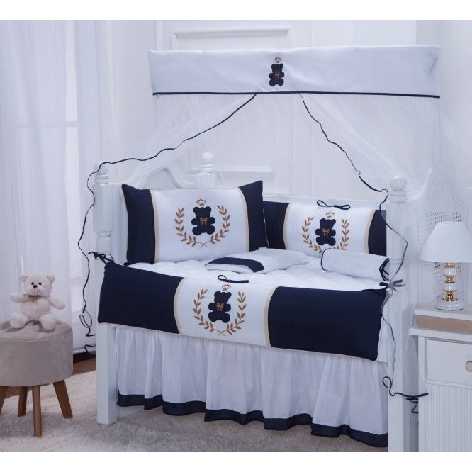 Kit Berço Americano Urso Menino E Menina 9 Peças Com Saia