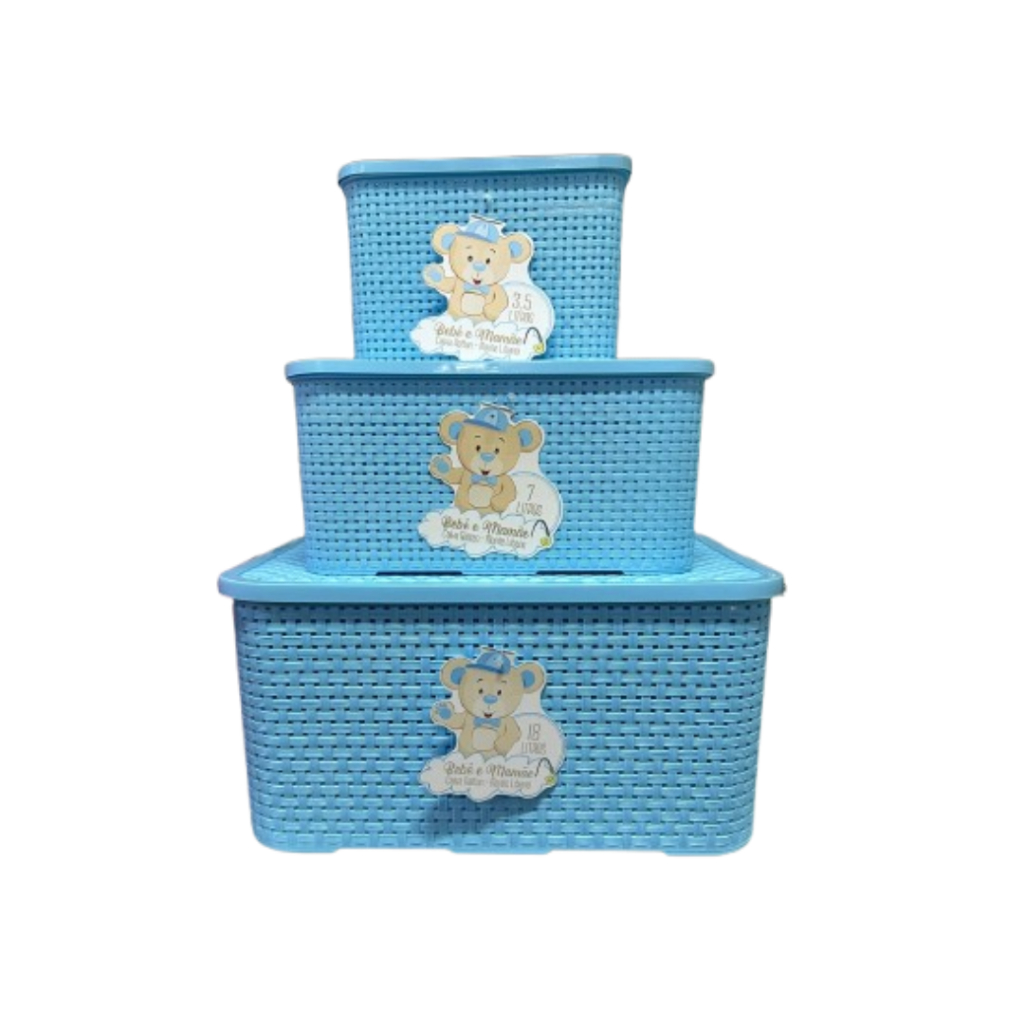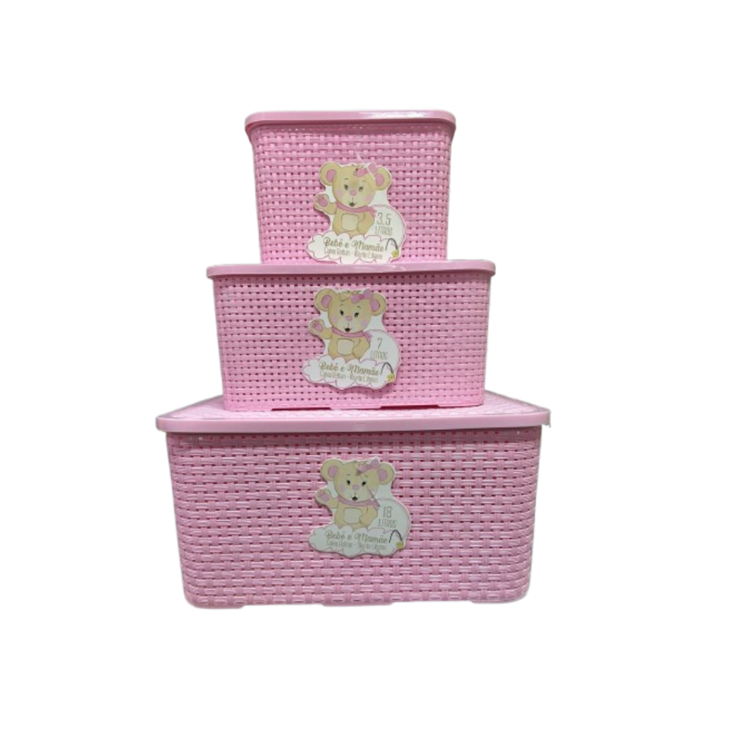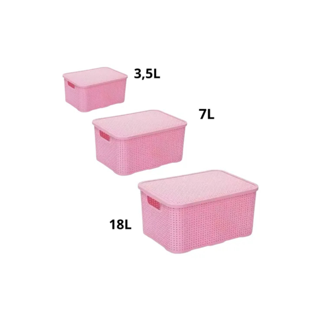 Kit 3 Caixas Organizadora Rattan REFORÇADA - 3,5L, 7L E 18L