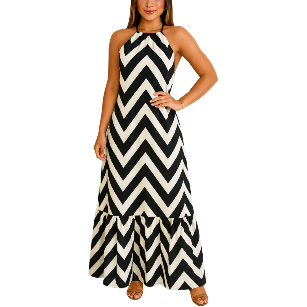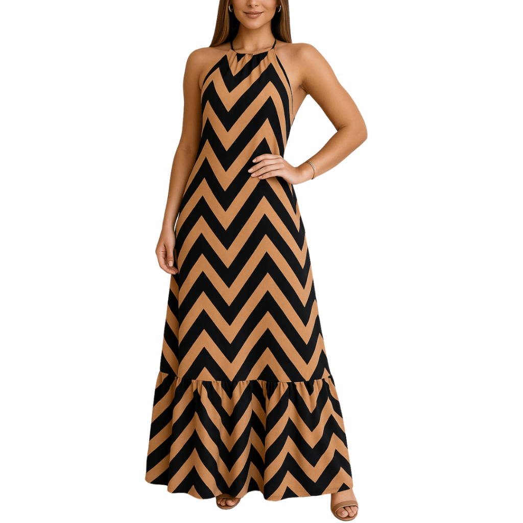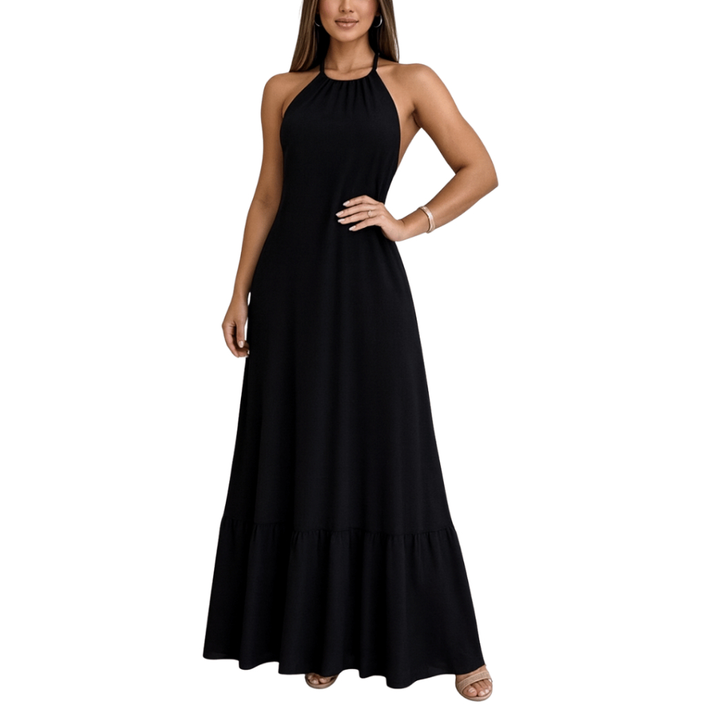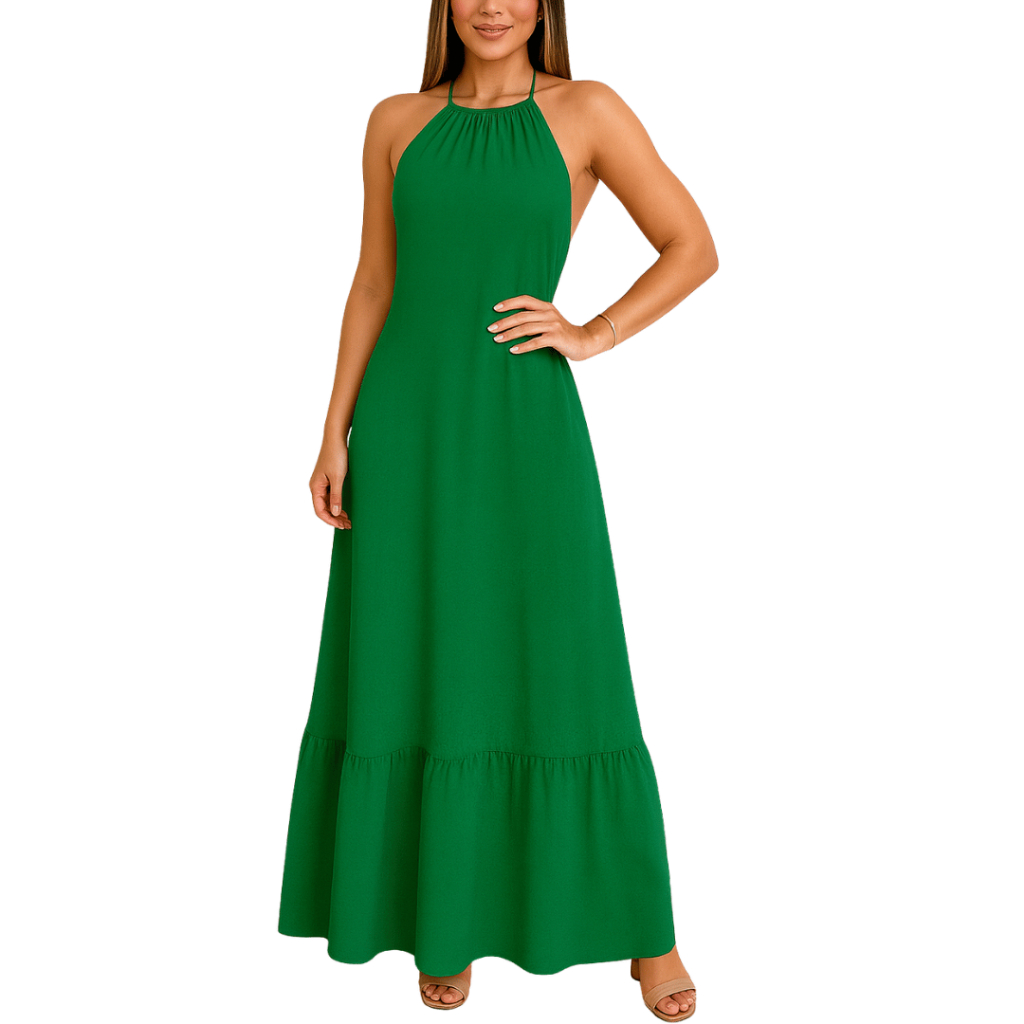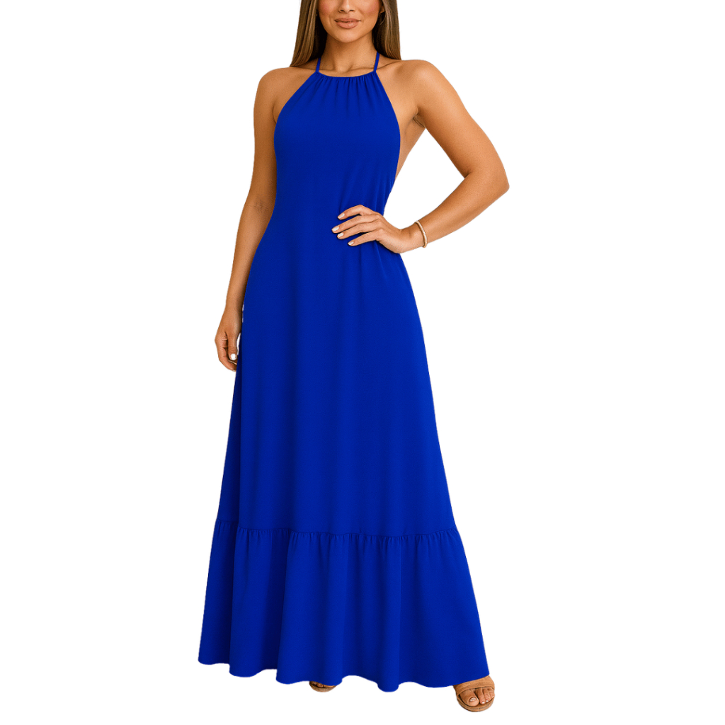 Vestido Longo Feminino Duna Frente Única Costa Nua Sortido
